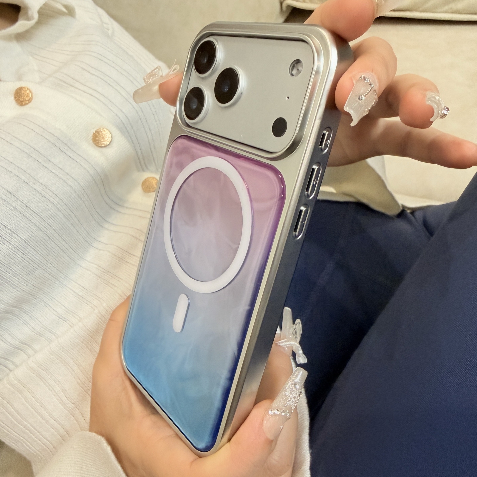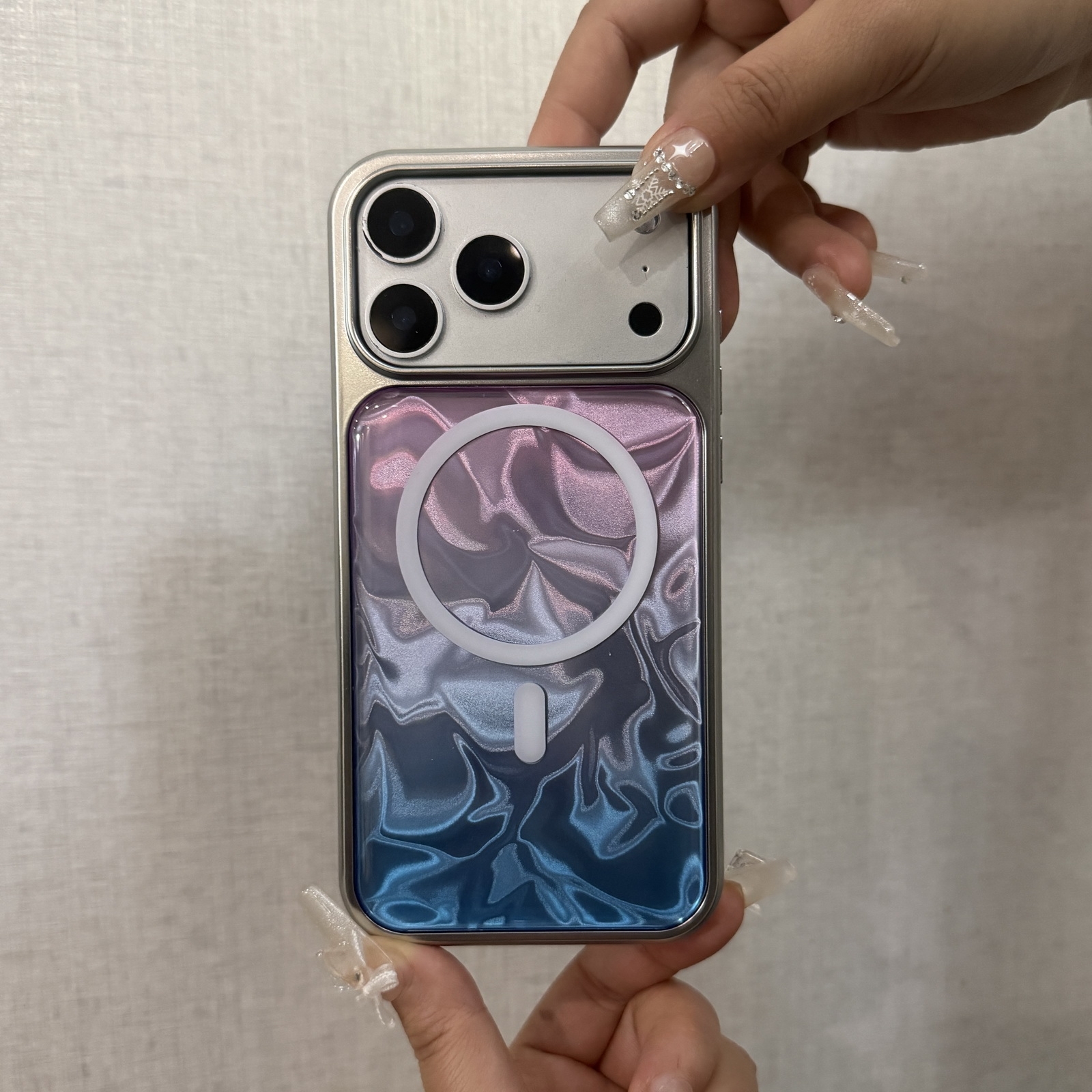Iridescent Wave Phone Case for iPhone 17 Pro Max - Purple Blue Gradient with MagSafe Compatible Design, Blue