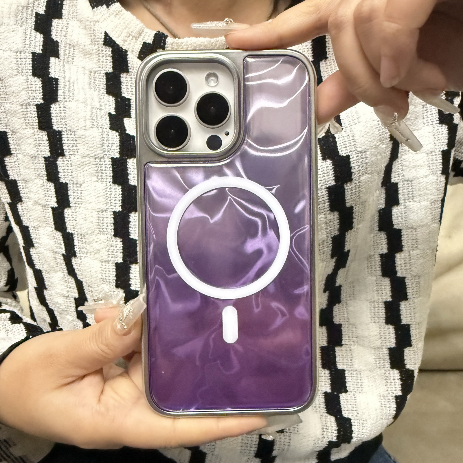 Iridescent Wave Phone Case for iPhone 17 Pro Max - Purple Blue Gradient with MagSafe Compatible Design, Purple