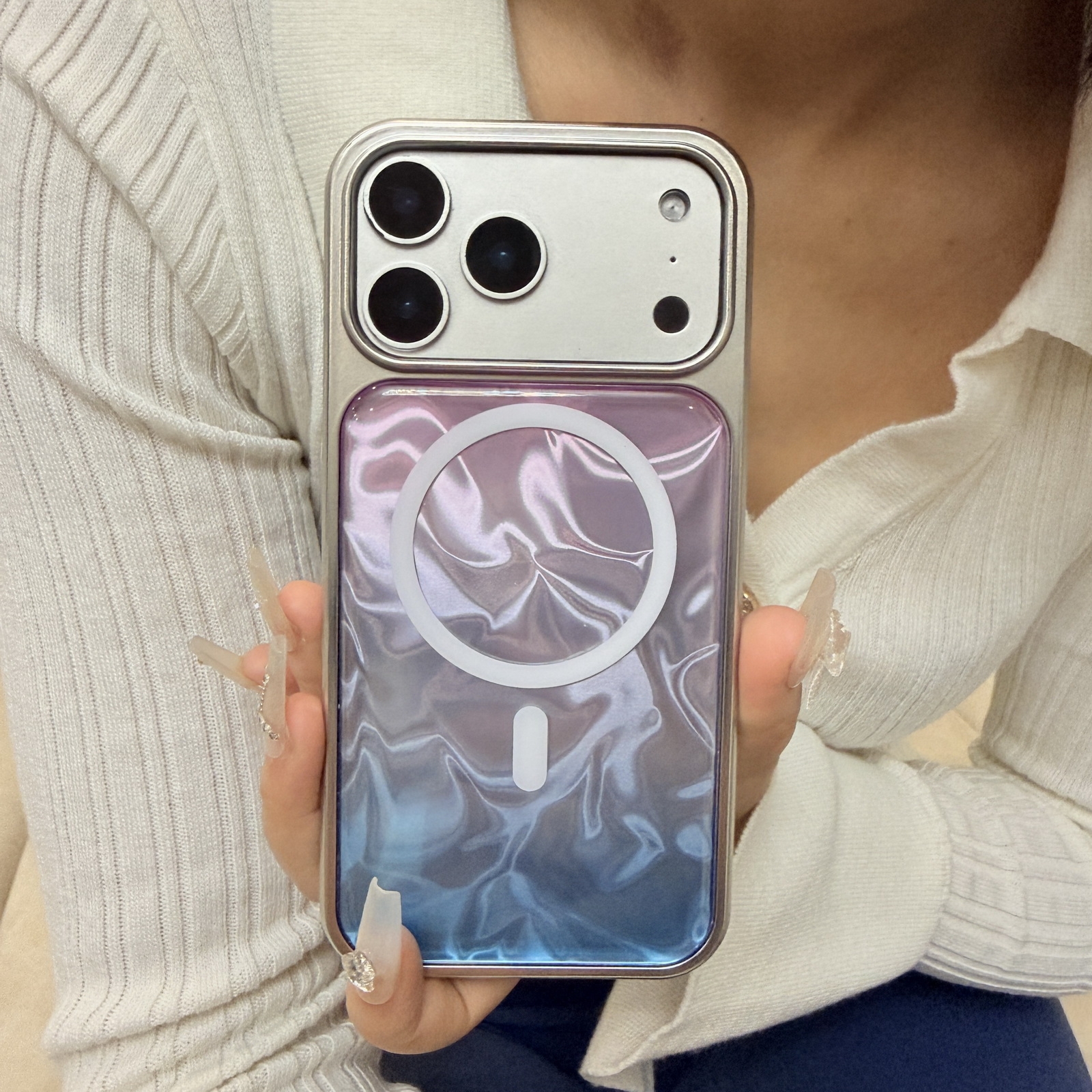 Iridescent Wave Phone Case for iPhone 17 - Purple Blue Gradient with MagSafe Compatible Design, Blue