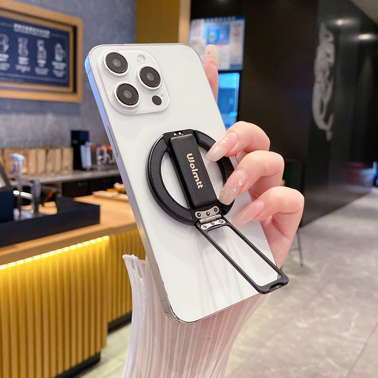 Magnetic Foldable Phone Stand with Finger Holder, Black - Black