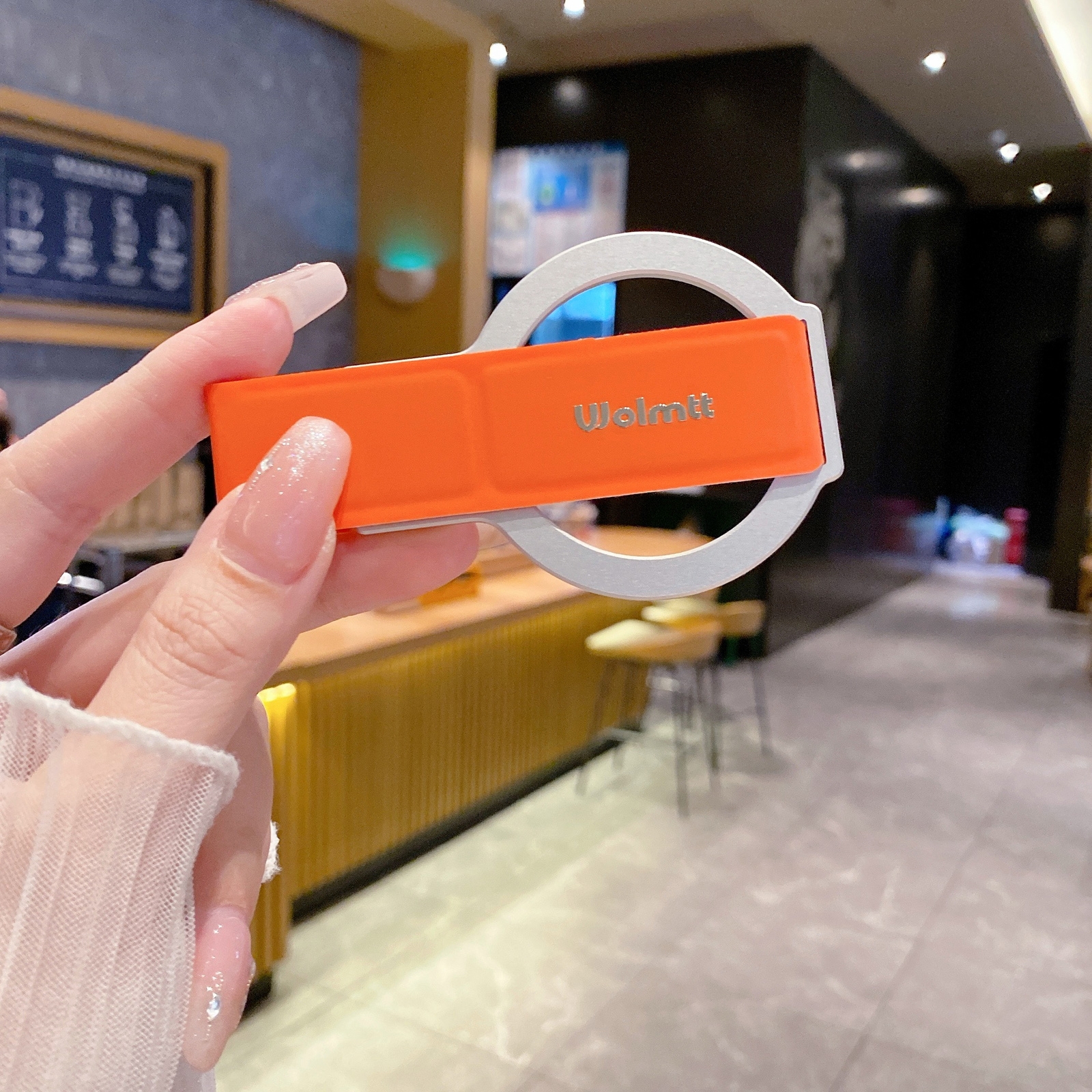 Magnetic Foldable Phone Stand with Finger Holder, Orange - Silver