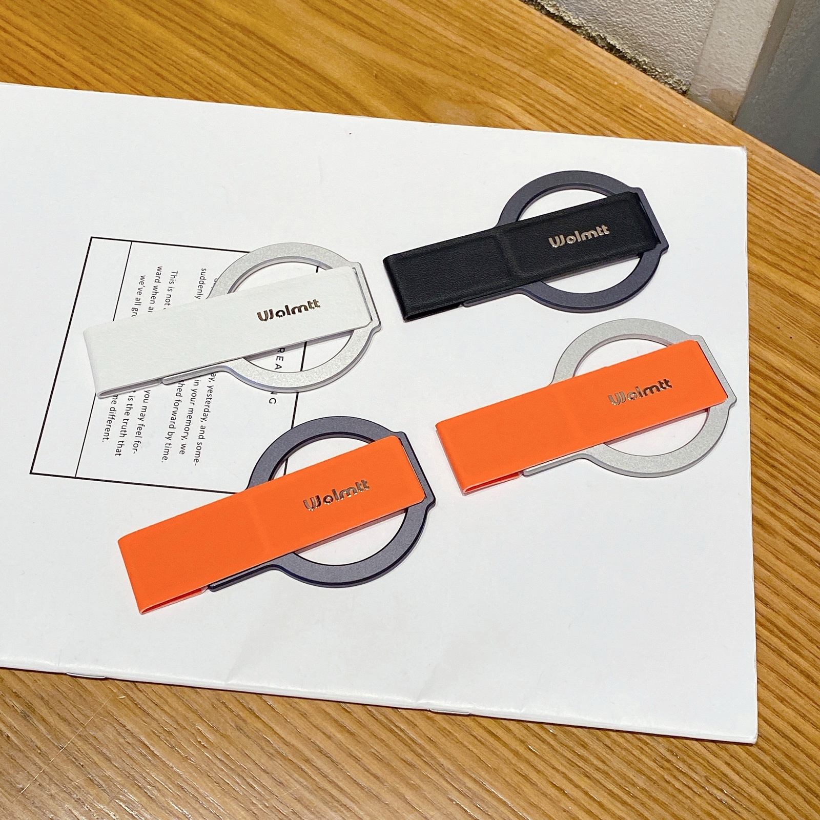 Magnetic Foldable Phone Stand with Finger Holder, Orange - Black