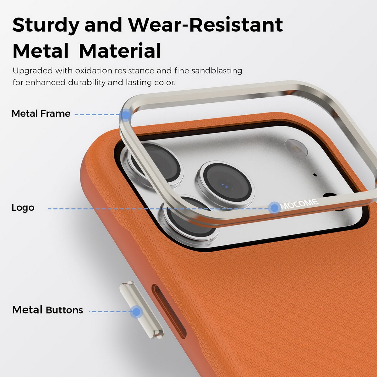 Matte Grid Texture Case for iPhone 17 - Metal Camera Frame & Magnetic Charging Support, Orange