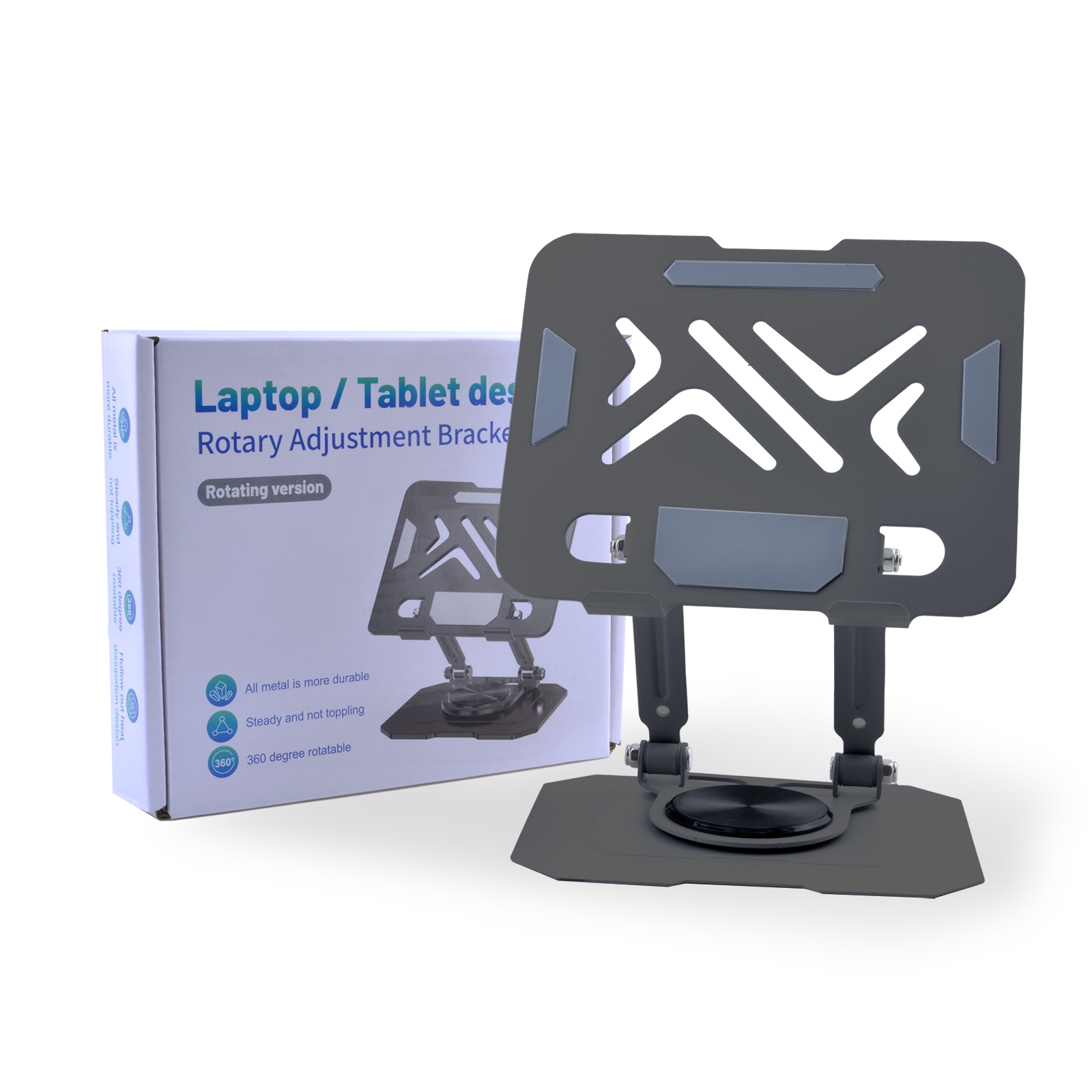 Metal Laptop Stand - 360° Rotating Cooling Foldable Riser, Black