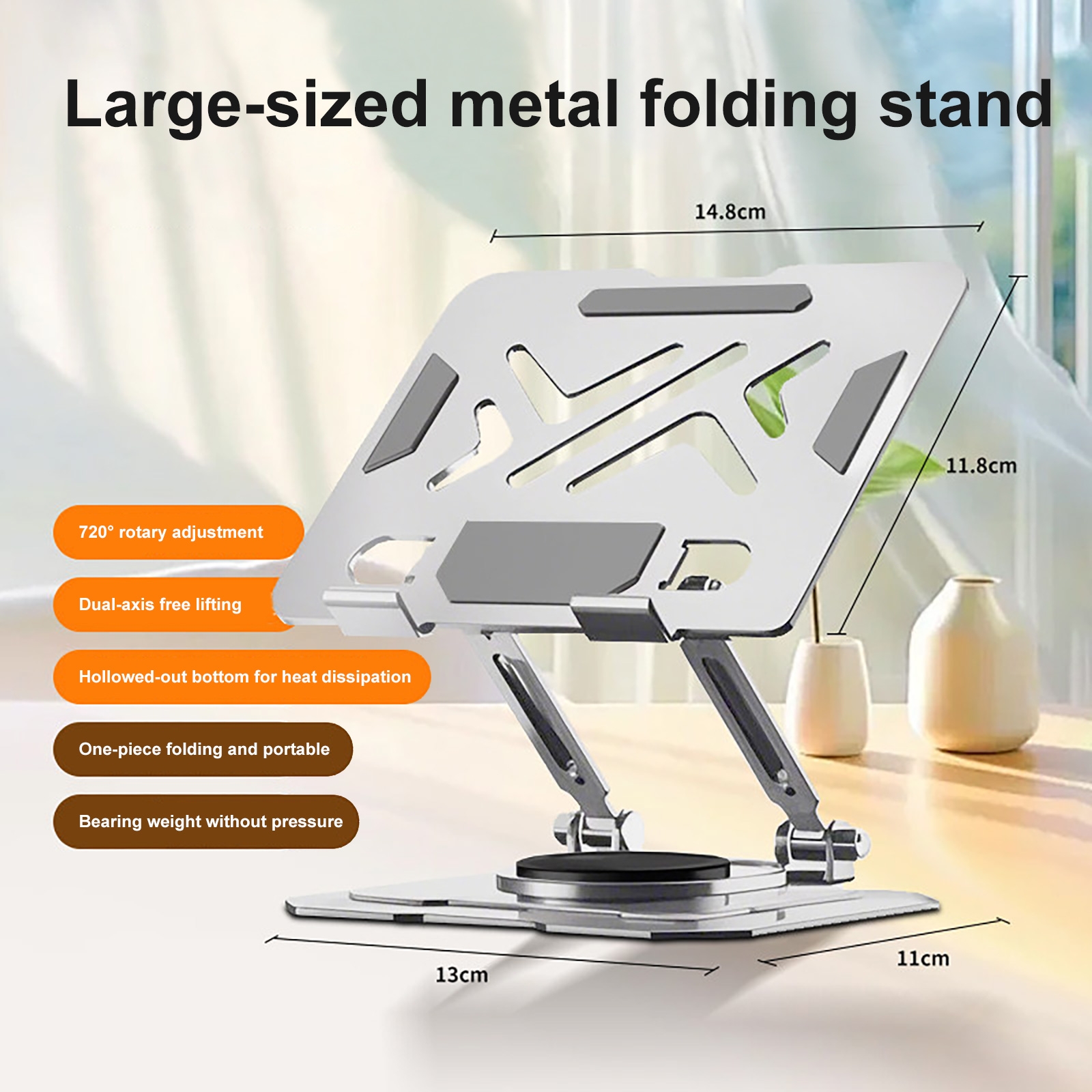 Metal Laptop Stand - 360° Rotating Cooling Foldable Riser, Silver