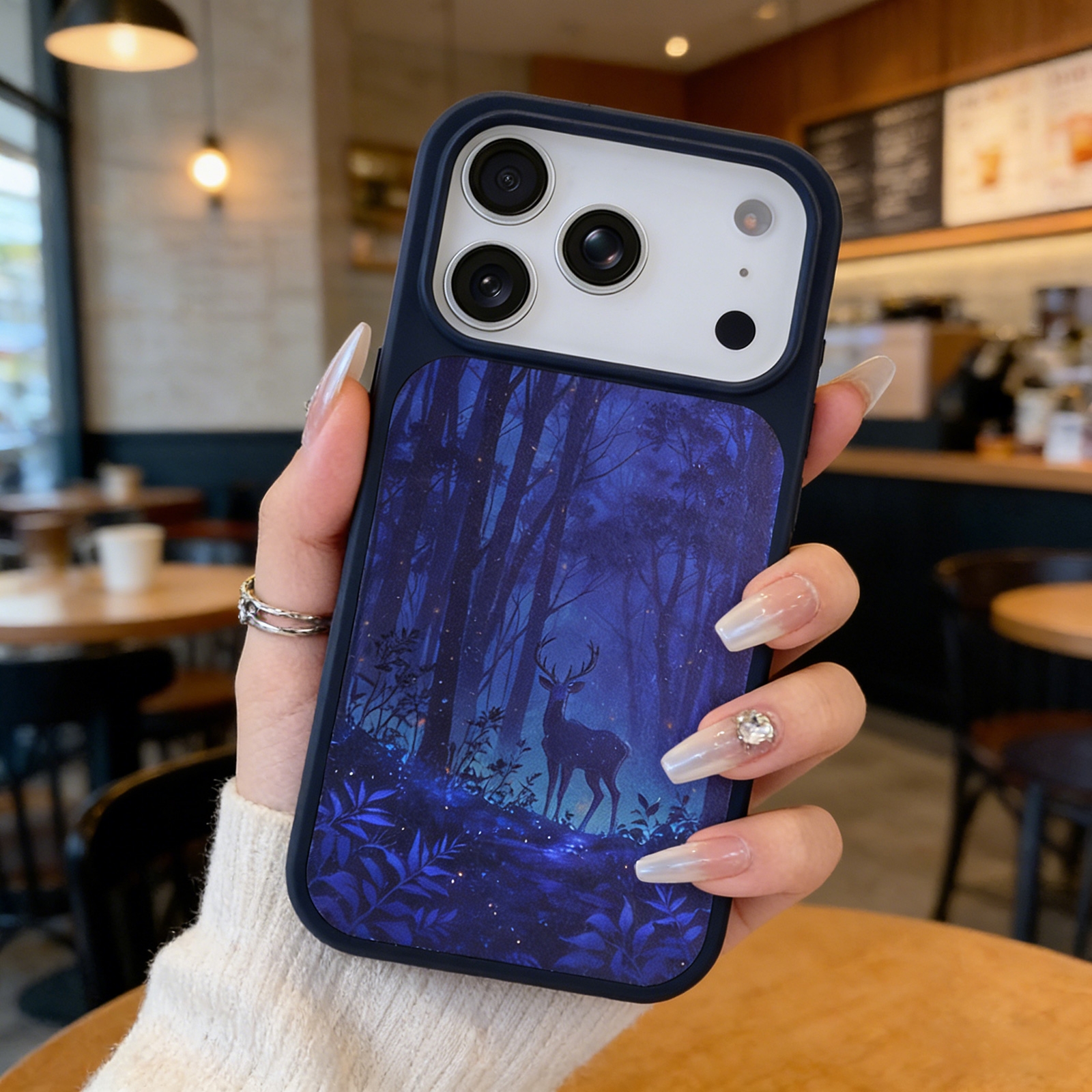 Moonlit Deer in Forest Magnetic Phone Case for iPhone 17 Pro Max, Black