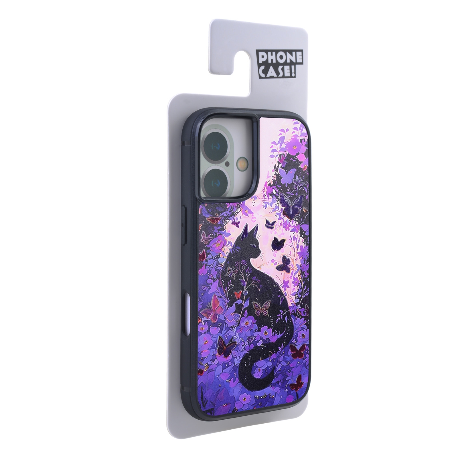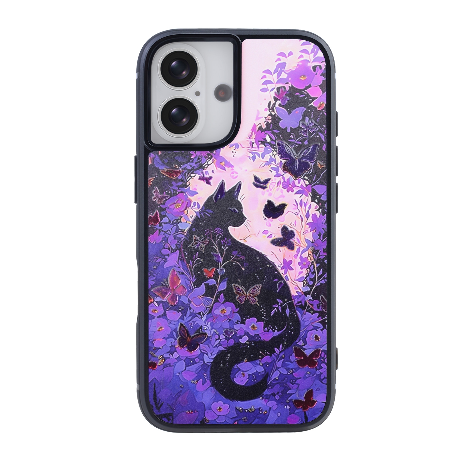 Mysterious Cat and Purple Flowers Print Magnetic Case for iPhone 17