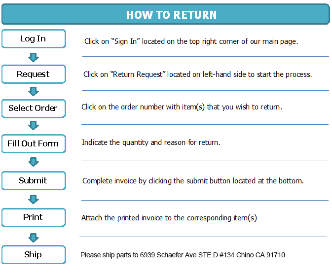 Please follow the steps below to properly return your parts.