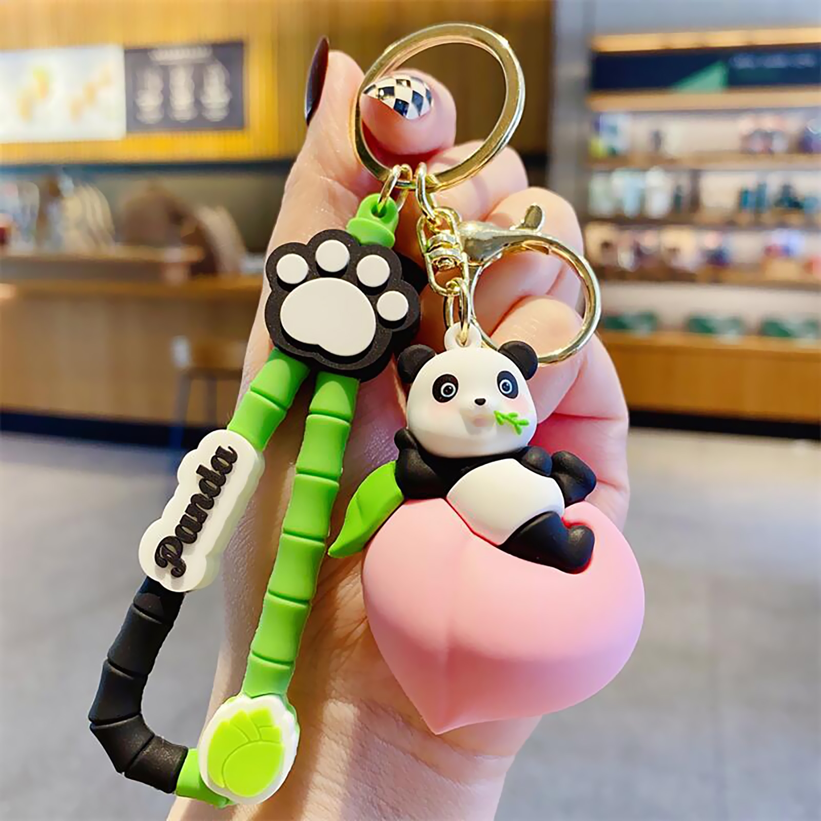 Panda with Peach Phone Charm, Pink