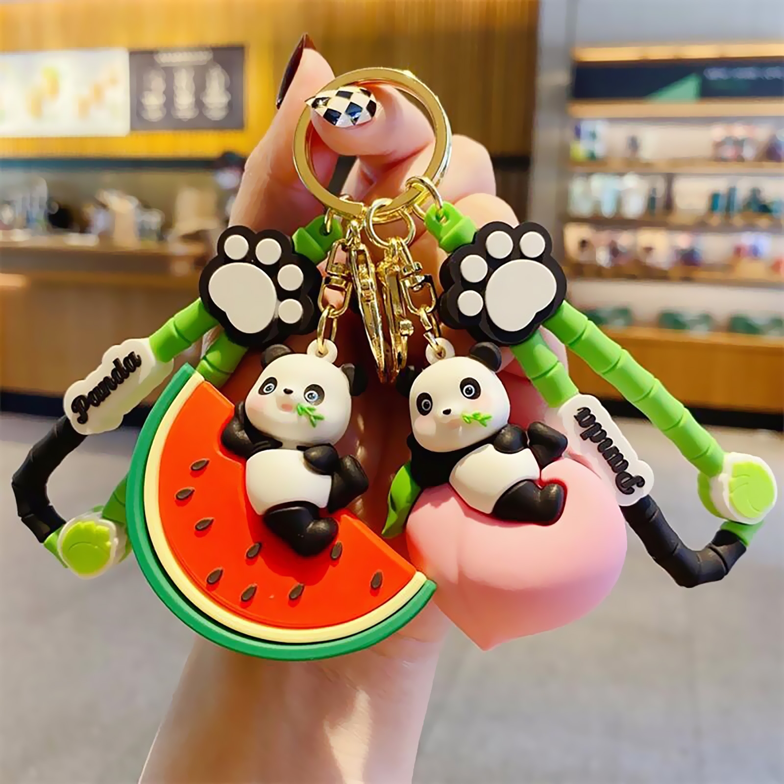 Cute Panda Holding Bamboo Phone Charm, Green