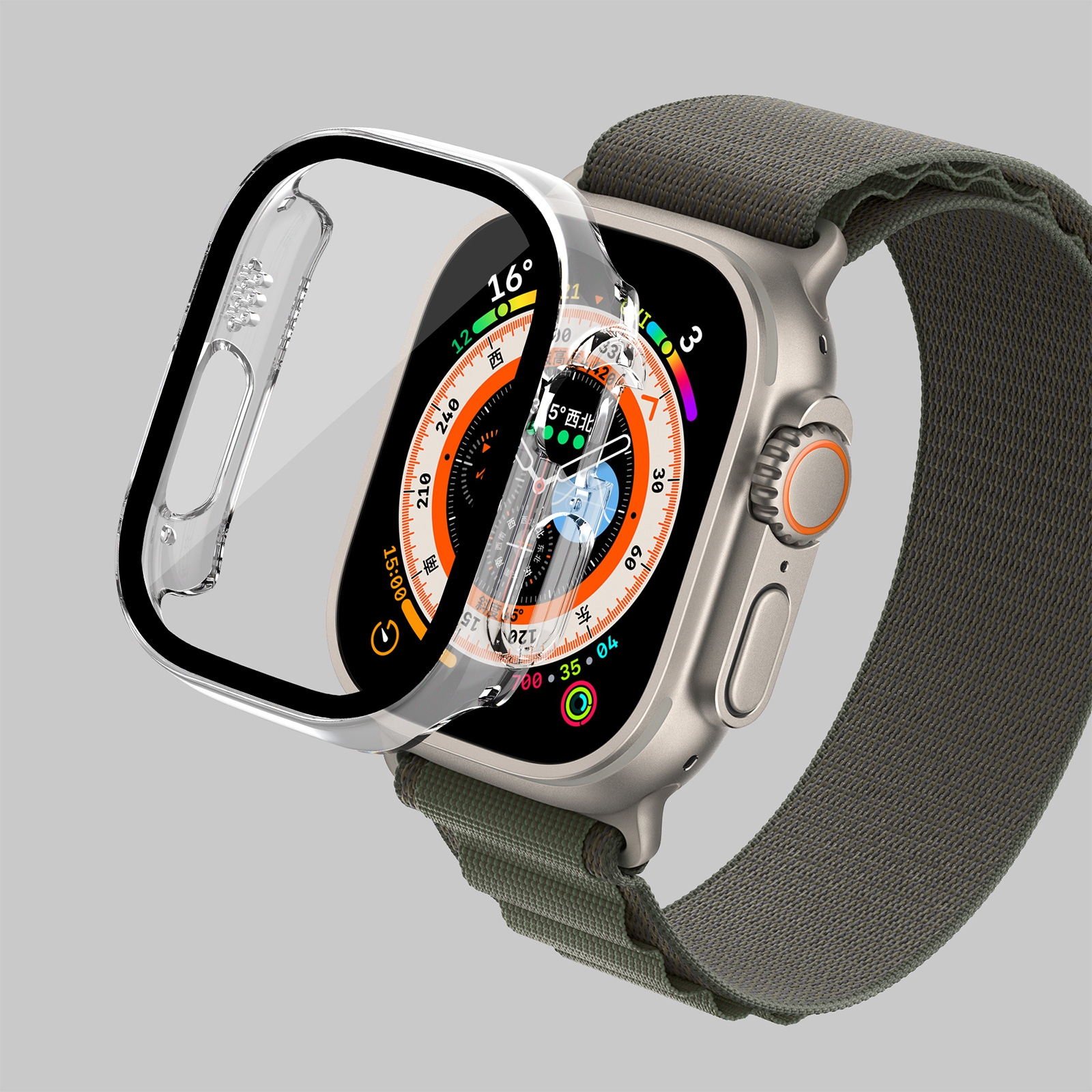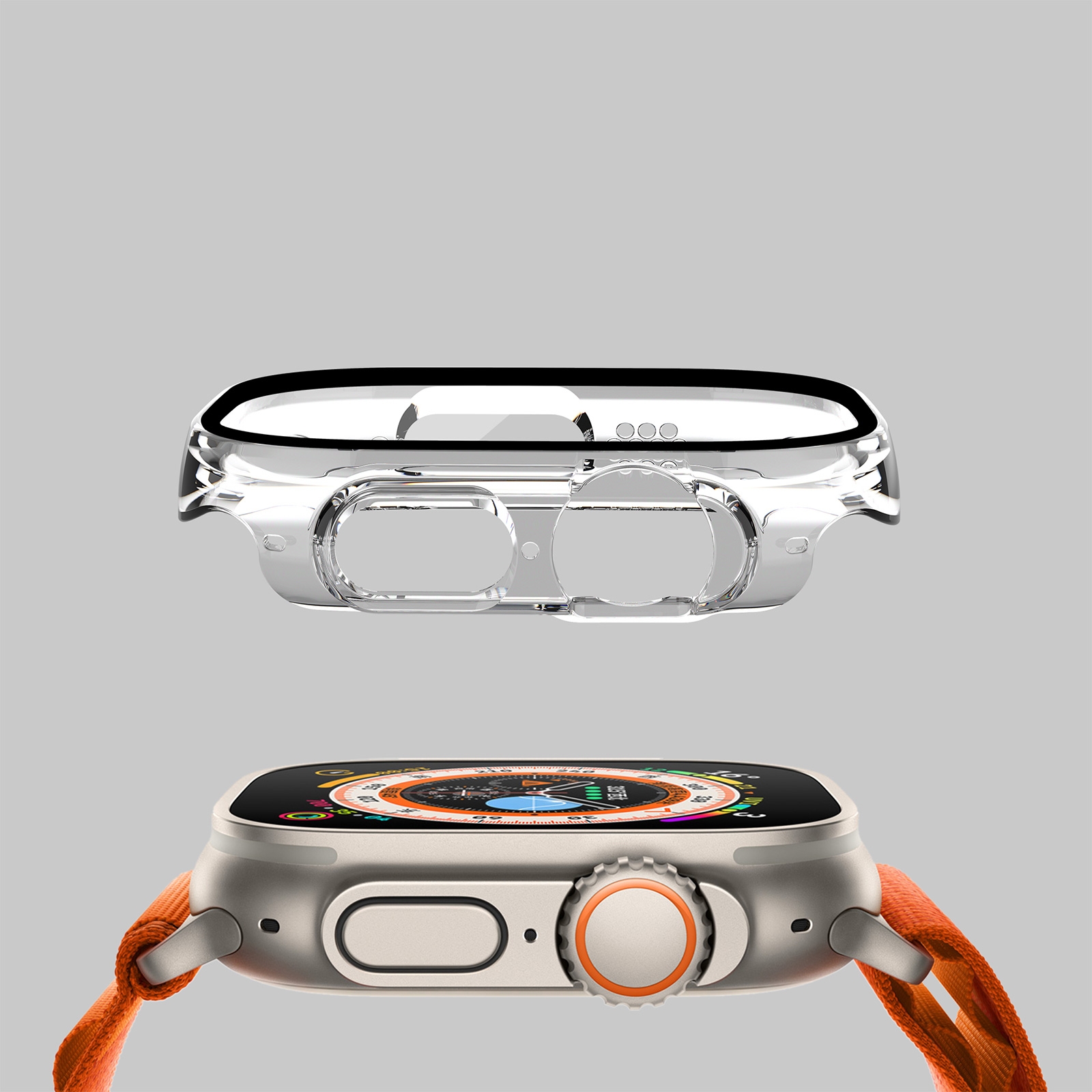PC Case with Built-in Tempered Glass for iWatch Ultra 1/2/3 (49mm), Clear
