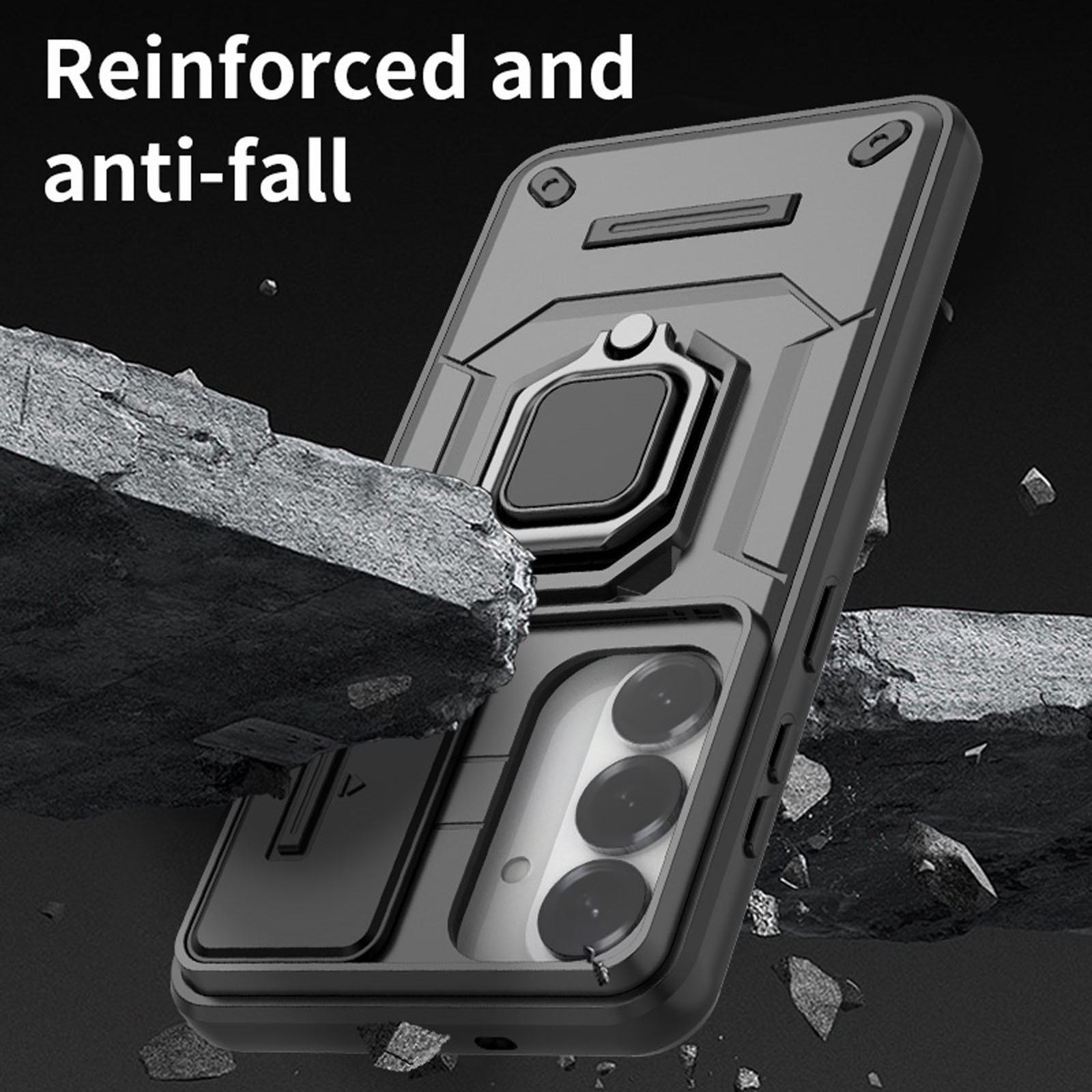 Phone Case for S26 Plus with Sliding Lens Cover & Foldable Ring Holder, Black