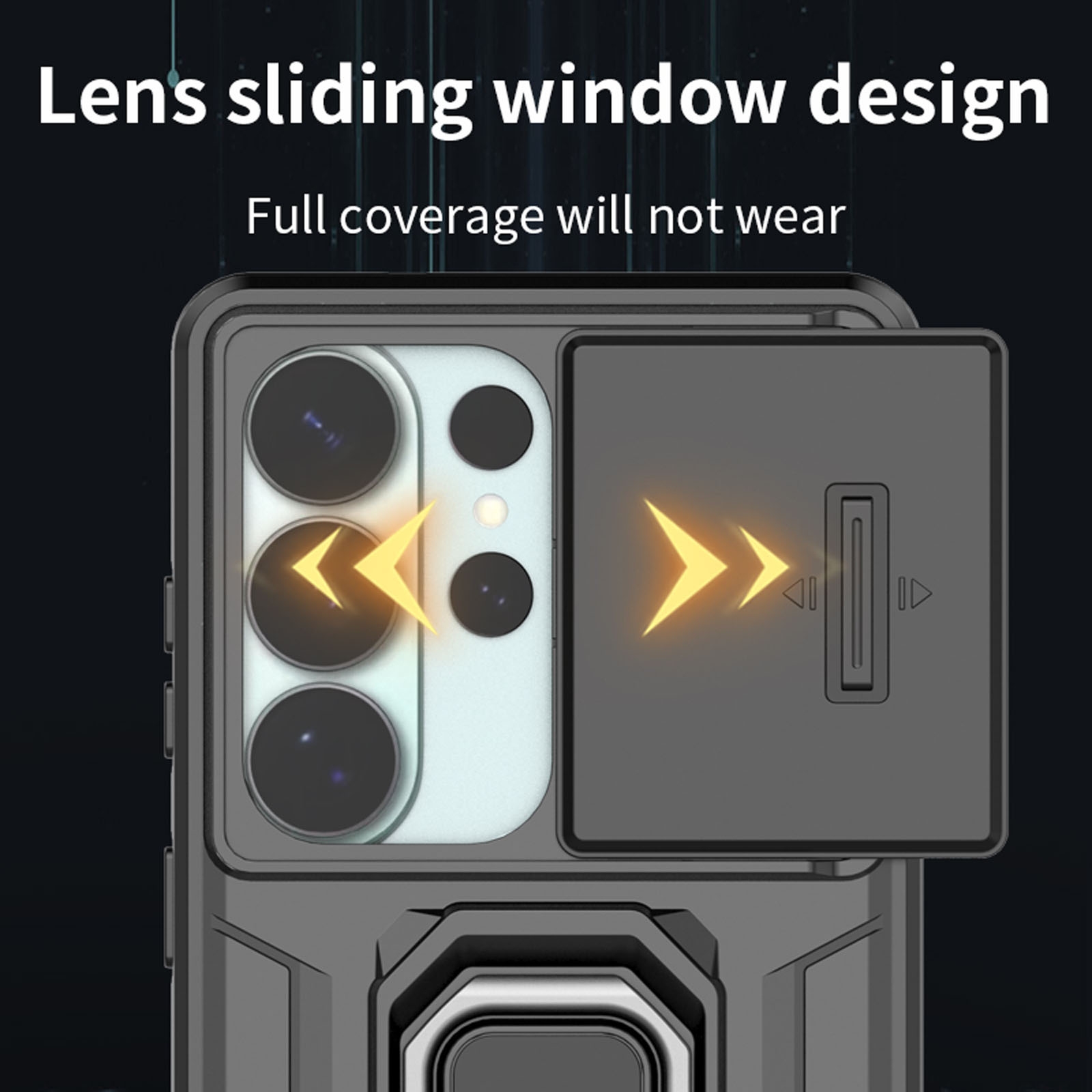 Phone Case for S26 Ultra with Sliding Lens Cover & Foldable Ring Holder, Black