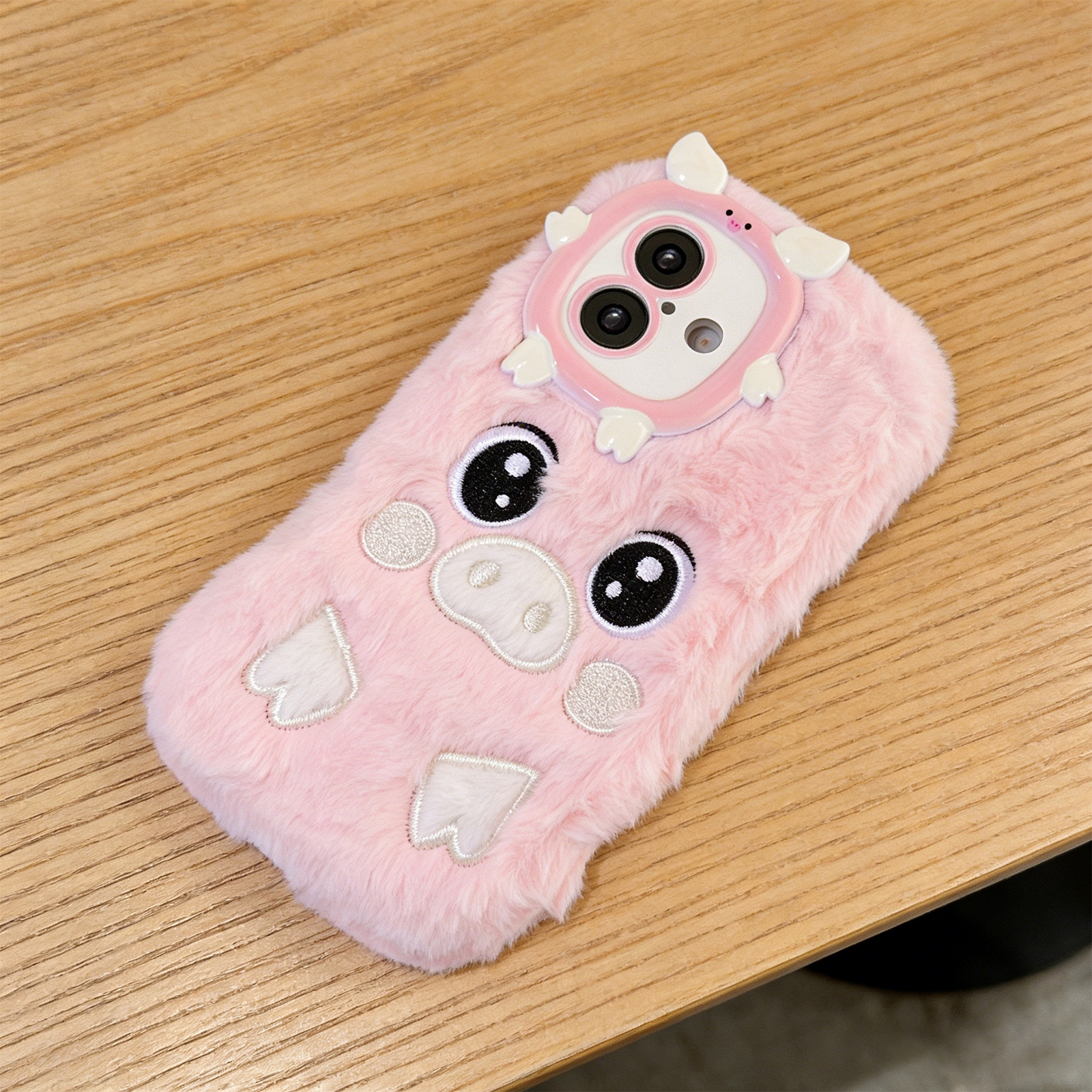 Pink Pig Plush Silicone Phone Case for iPhone 16 – Soft Cute Protective Cover