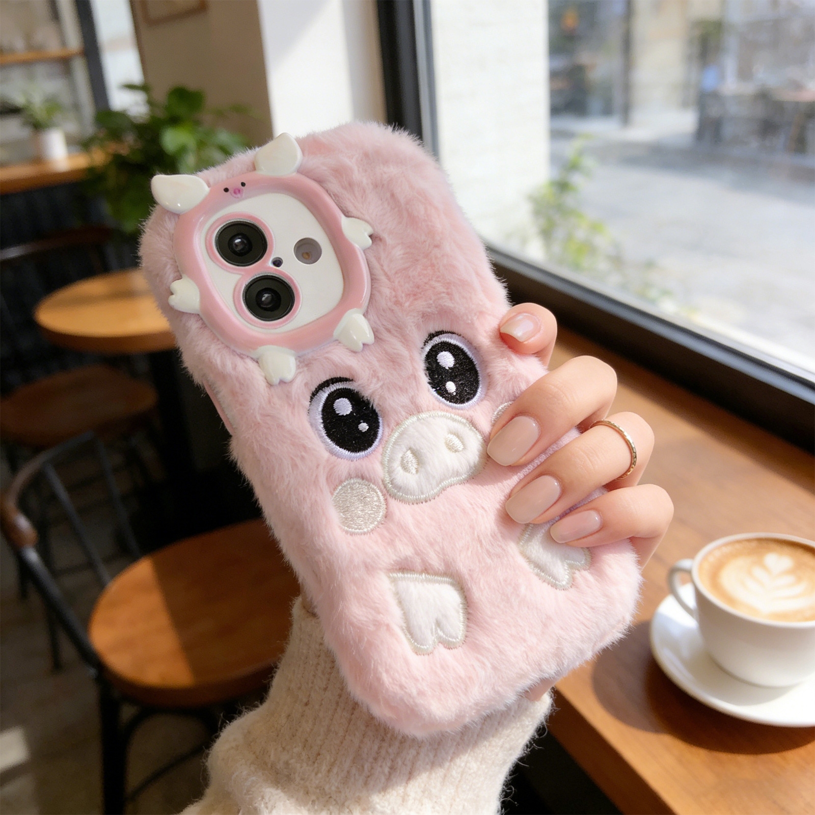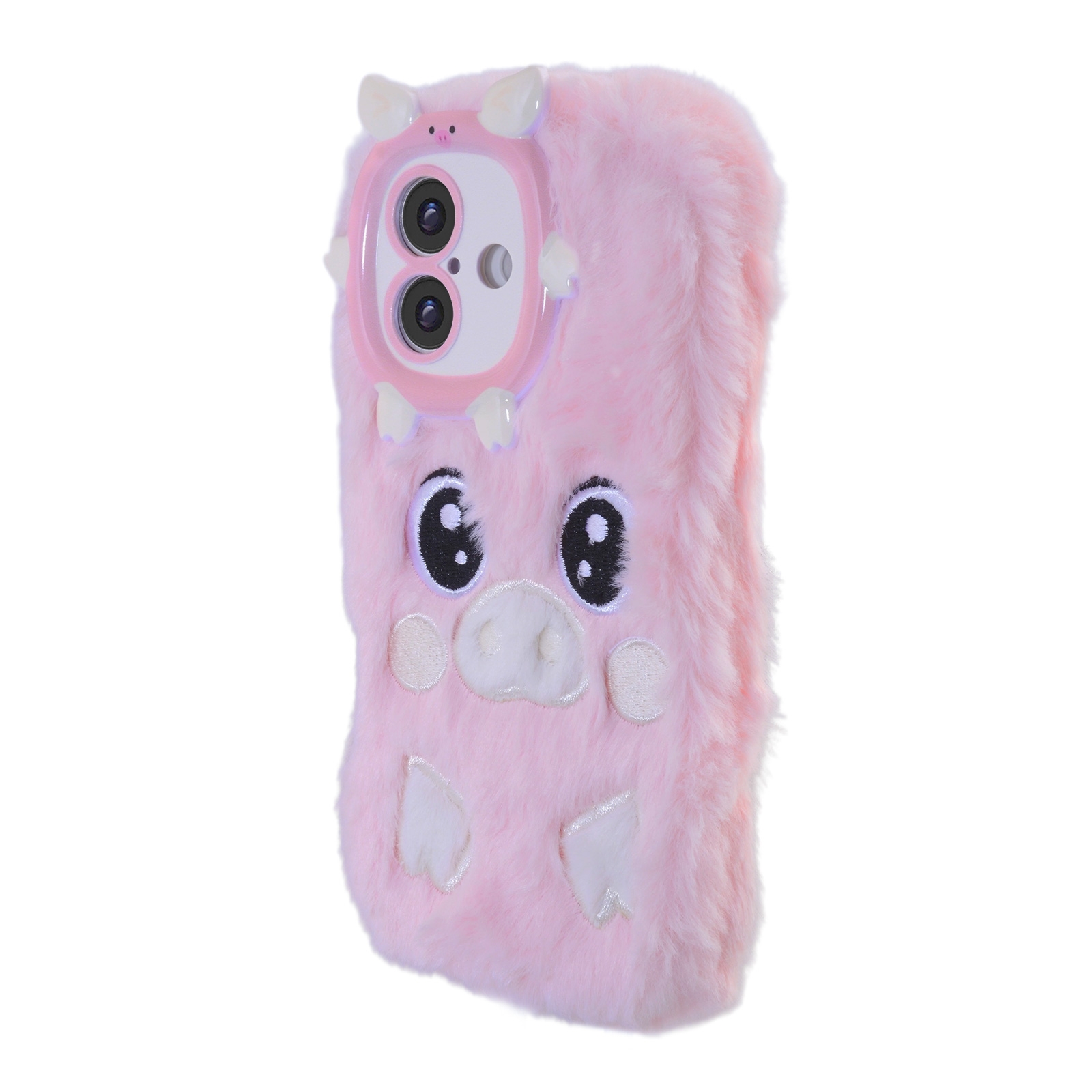Pink Pig Plush Silicone Phone Case for iPhone 17 – Soft Cute Protective Cover