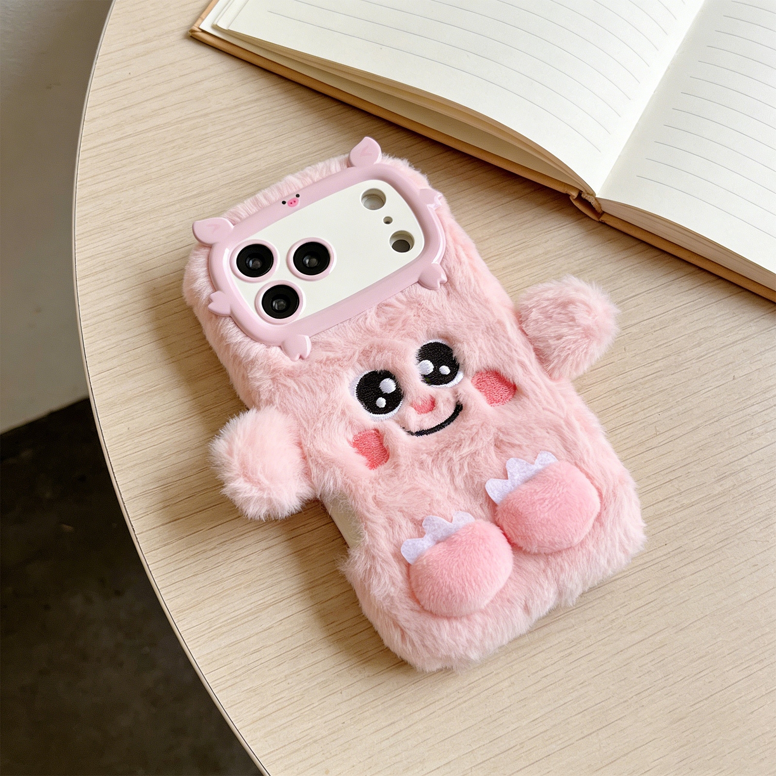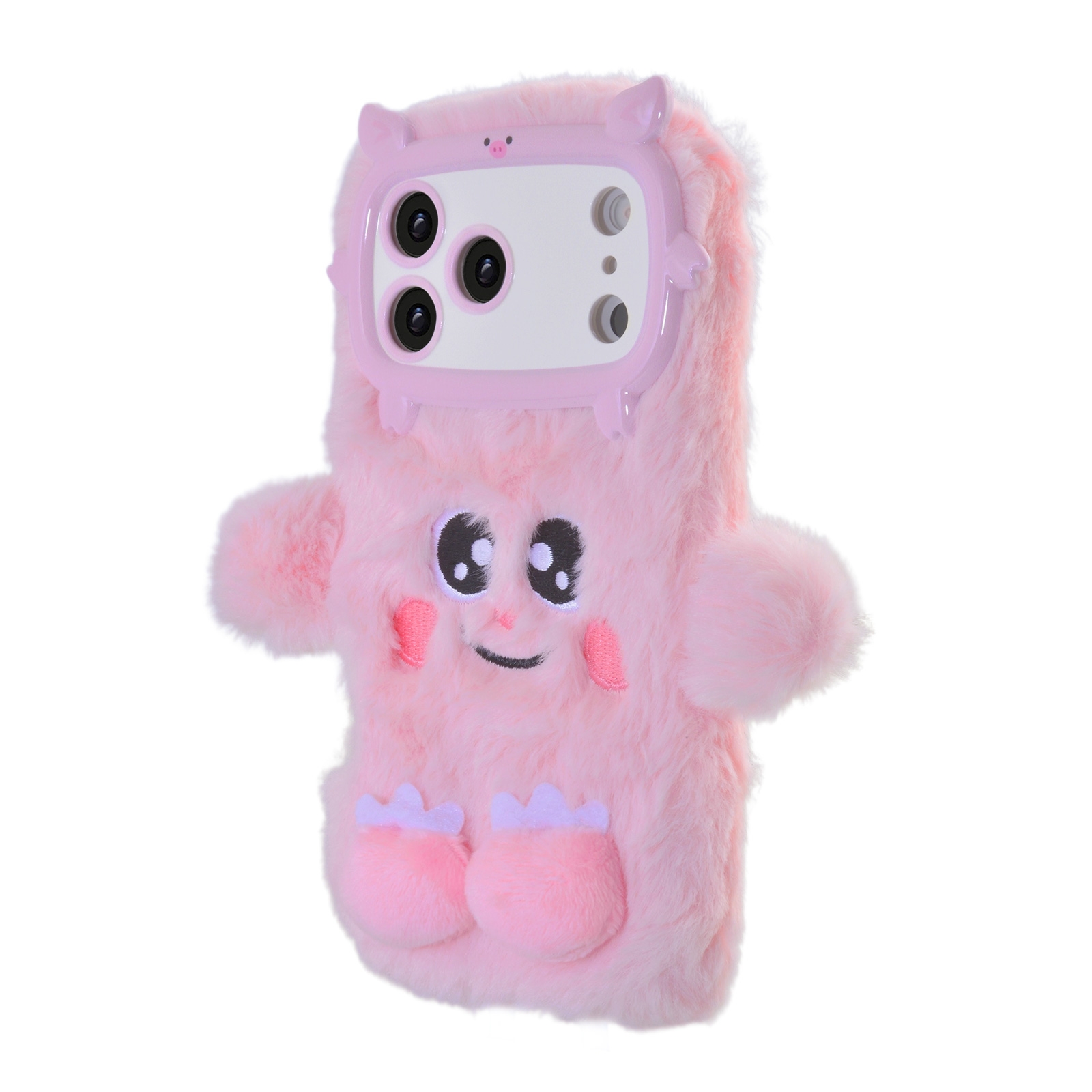 Pink Plush Silicone Monster Phone Case for iPhone 17 Pro – Soft Furry Cute Protective Cover