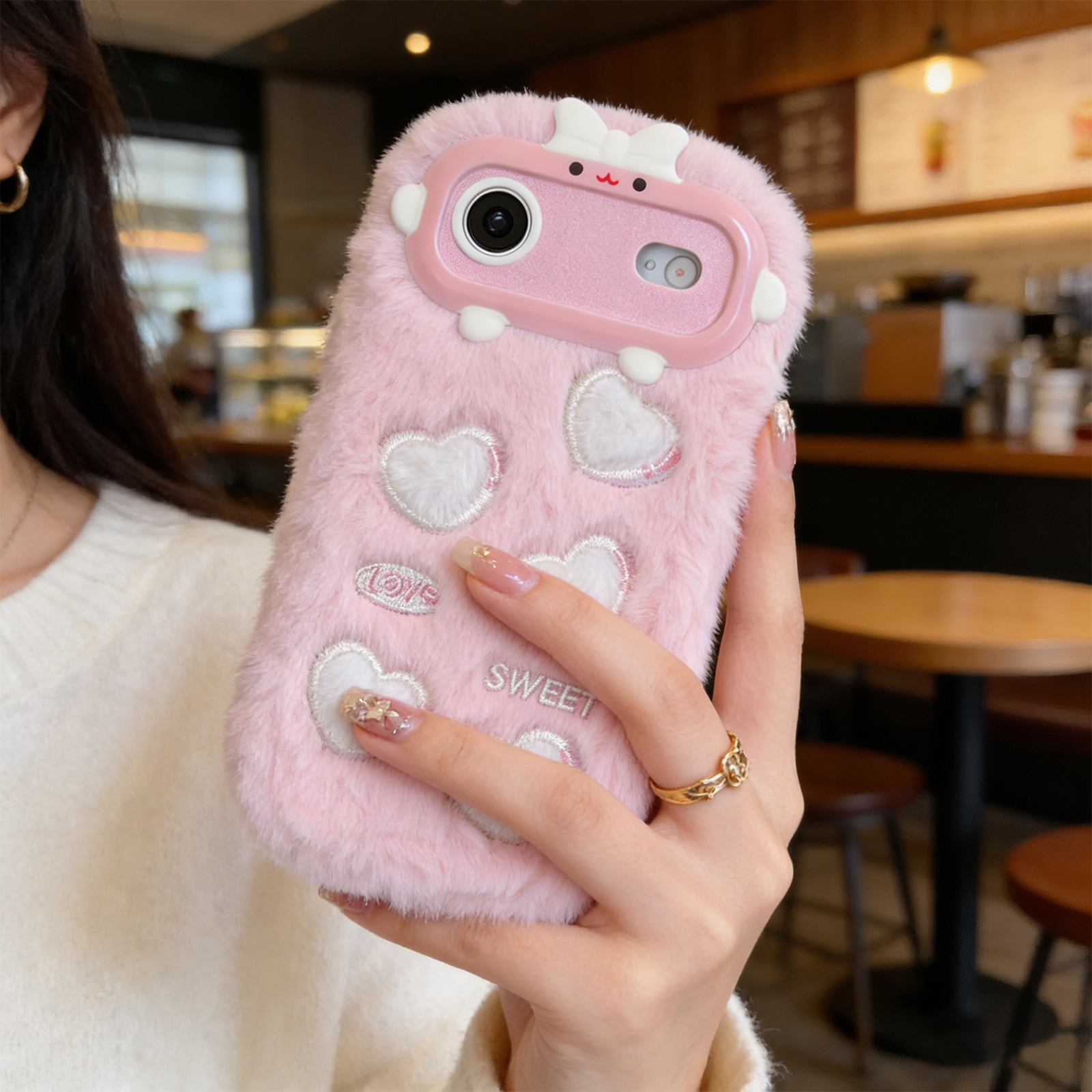Pink Plush Silicone Bunny with Tail Phone Case for iPhone Air – Soft Furry Cute Protective Cover