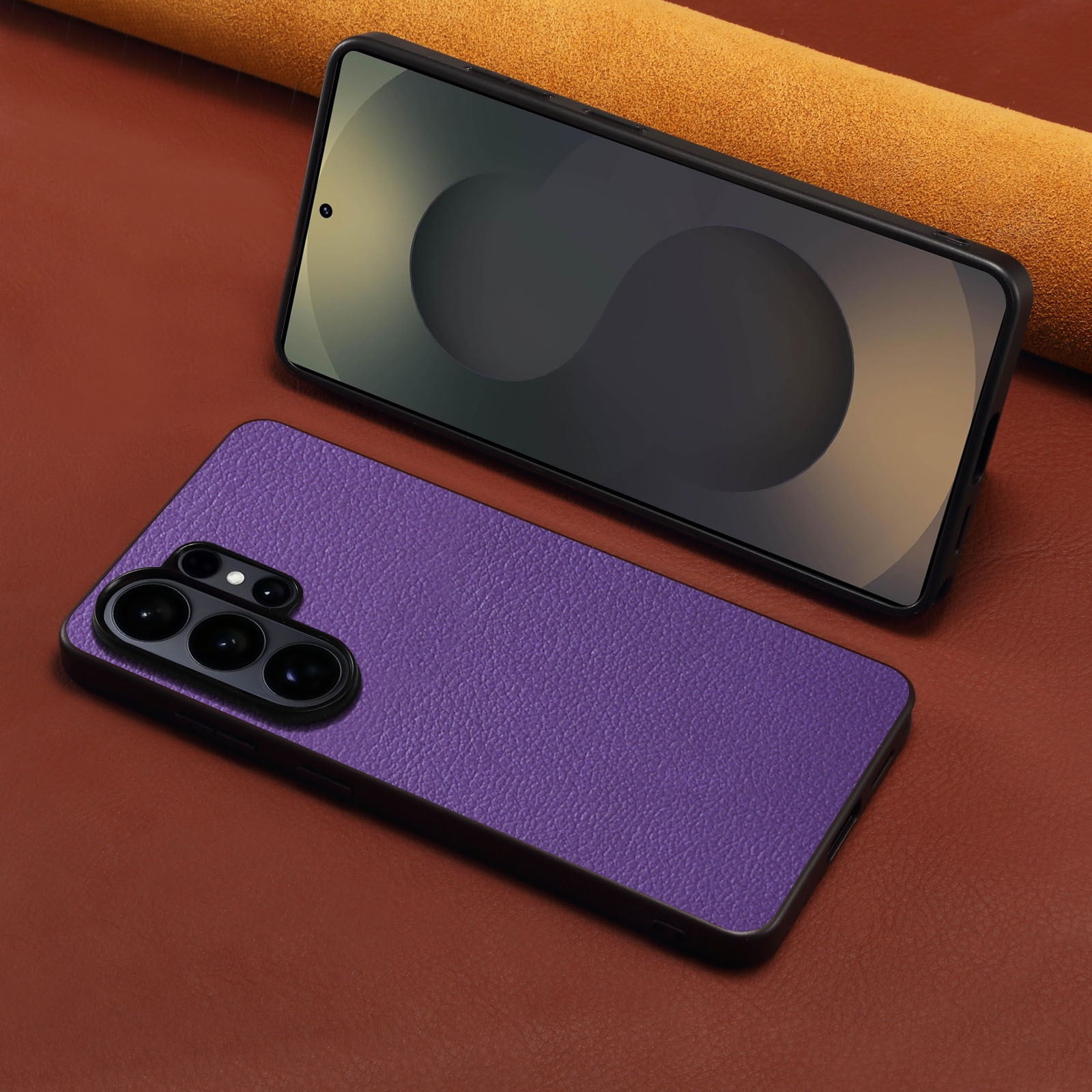 PU A08 Calf-Pattern Back Case for S26 Ultra, Purple