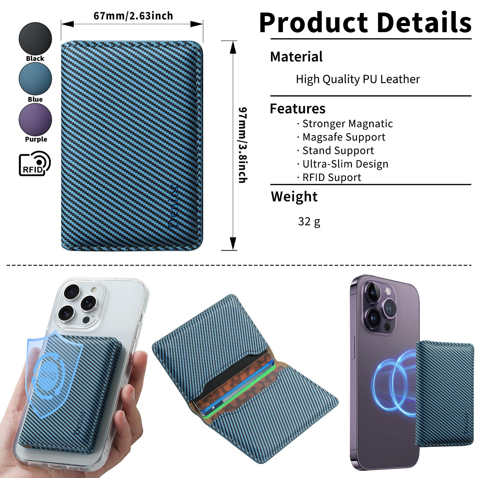 PU Carbon Fiber Pattern N52 Magnetic RFID Blocking Card Holder, Blue