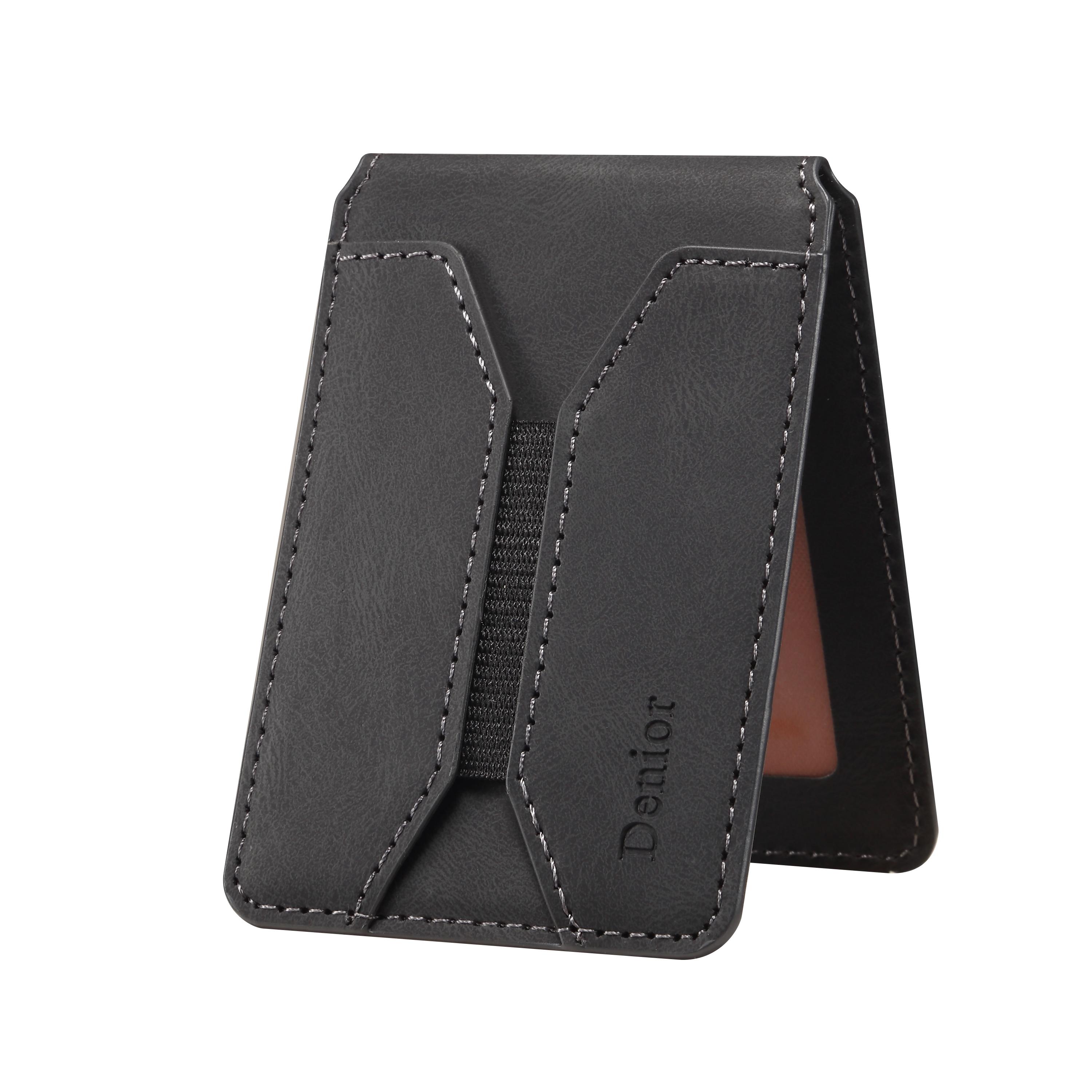 Denior PU Skin-Feel Material N52 Magnetic Elastic Top-Bottom Opening Card Holder | PU | Holds 4 Cards - Black