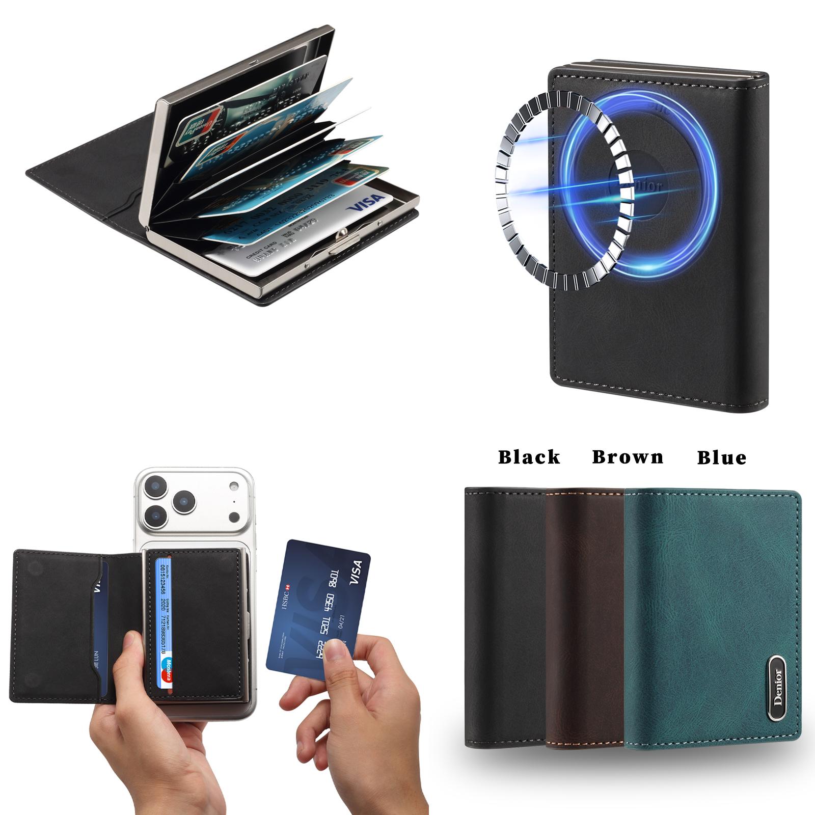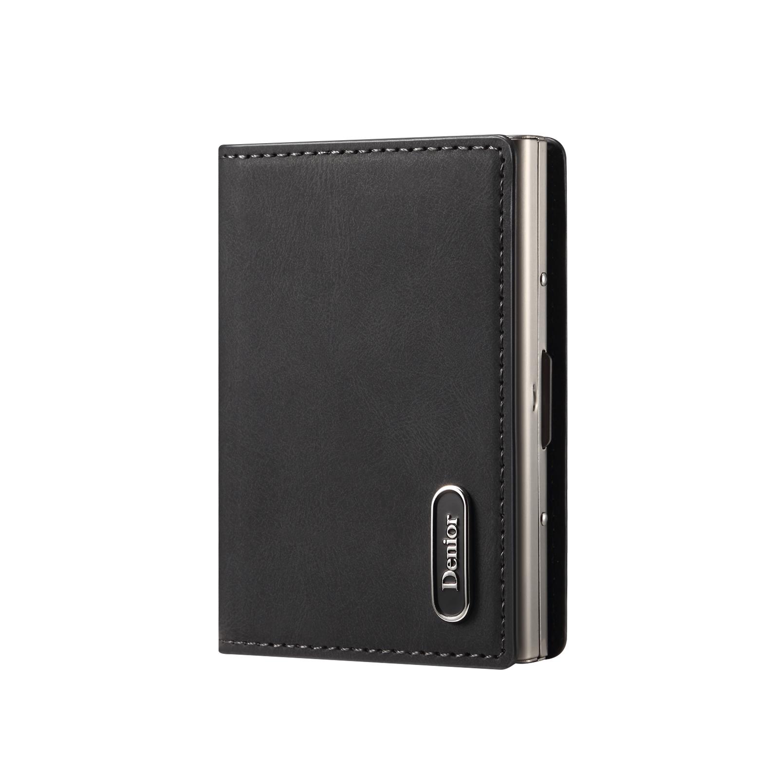 Denior PU Skin-Feel Faux Leather N52 Magnetic RFID Blocking Large-Capacity Wallet Card Holder | PU | Holds 9 Cards - Black