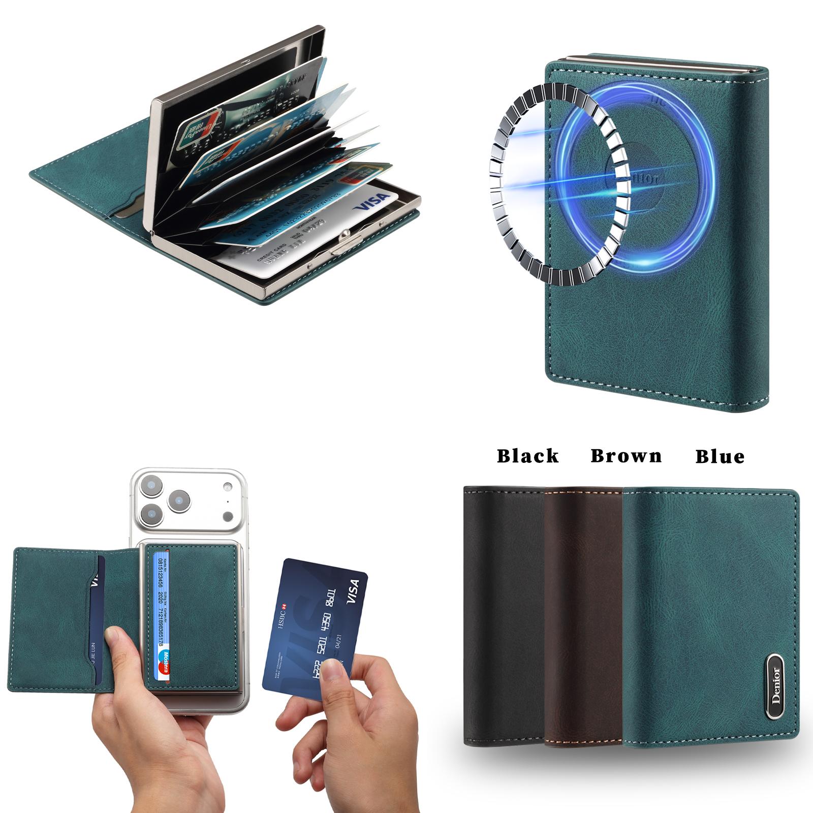 Denior PU Skin-Feel Faux Leather N52 Magnetic RFID Blocking Large-Capacity Wallet Card Holder | PU | Holds 9 Cards - Black