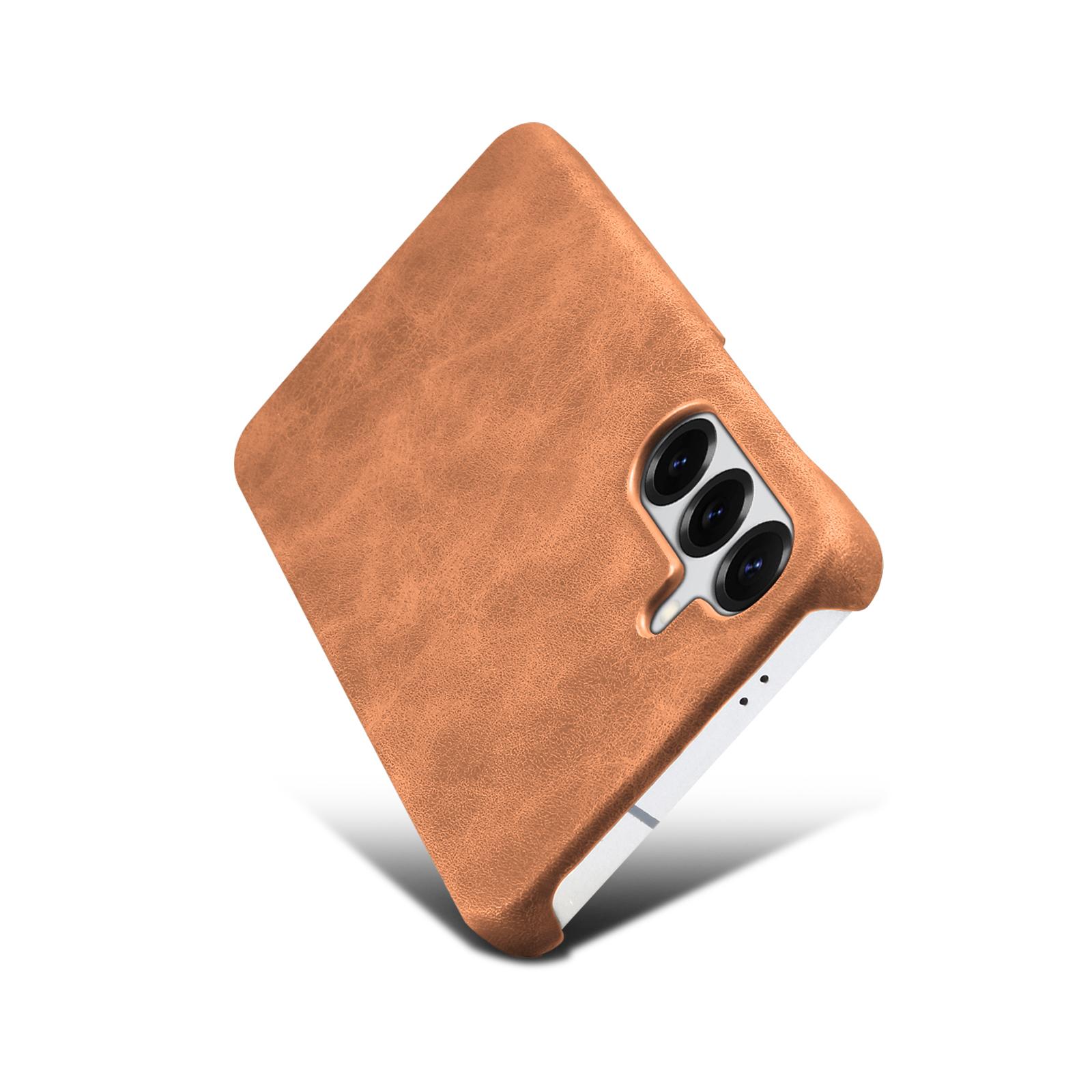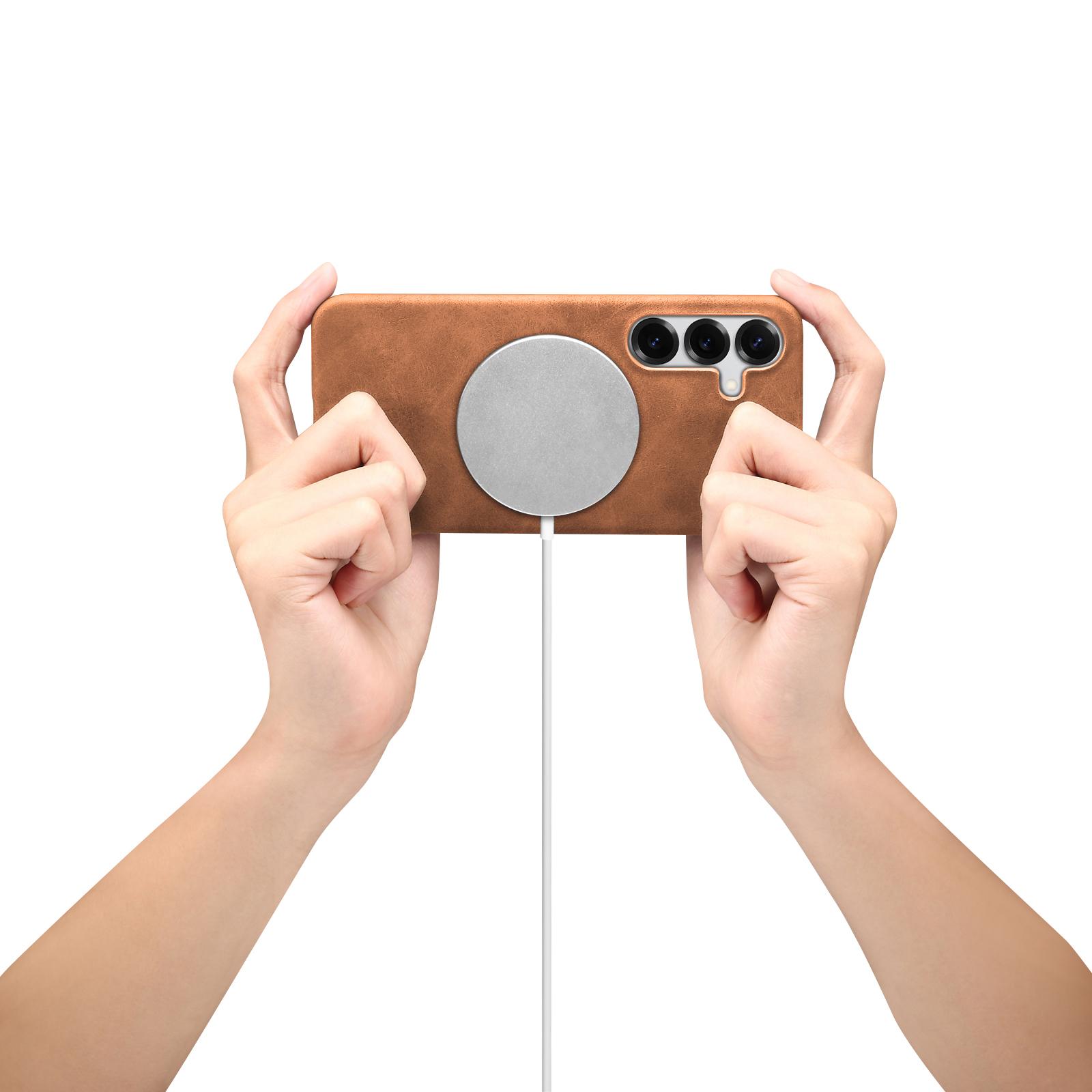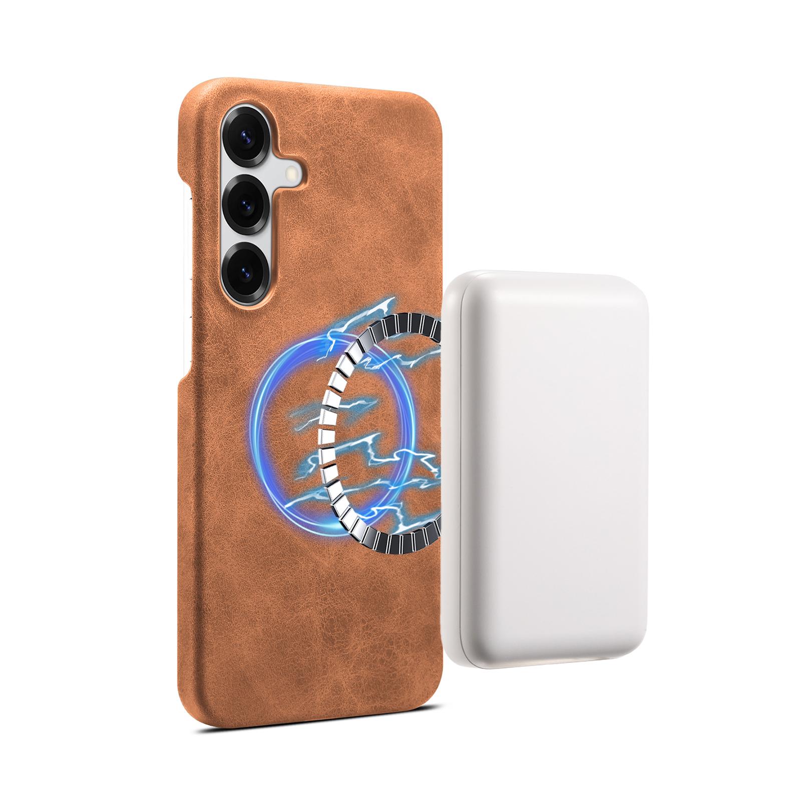 Denior Retro Faux Leather Texture Case for Samsung Galaxy S25 | Built-in N52 Magnet & MagSafe Wireless Charging Compatible | PU Faux Leather | Fingerprint-Resistant PC Hard Case - Brown