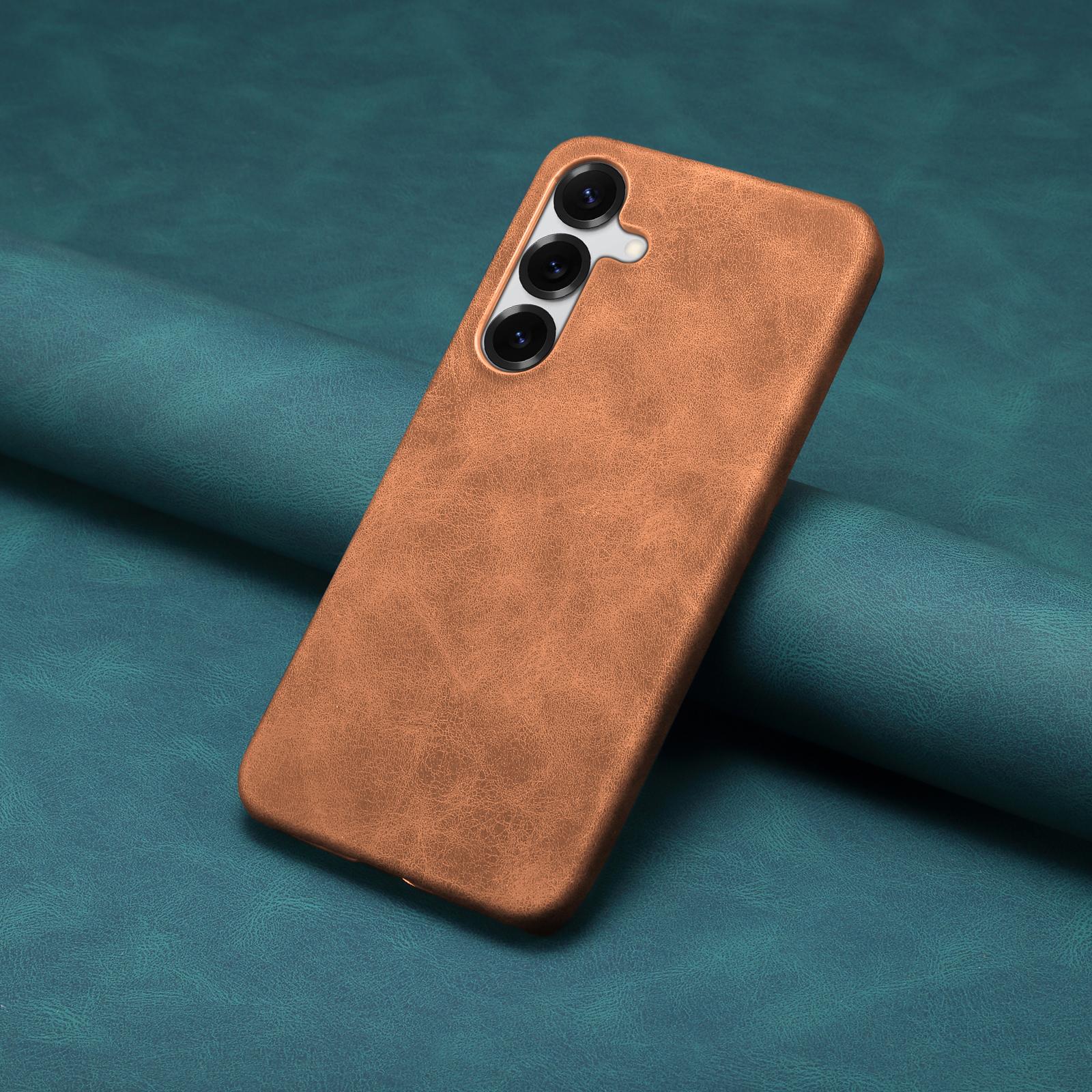 Retro Faux Leather Texture Case for Samsung Galaxy S25, Brown