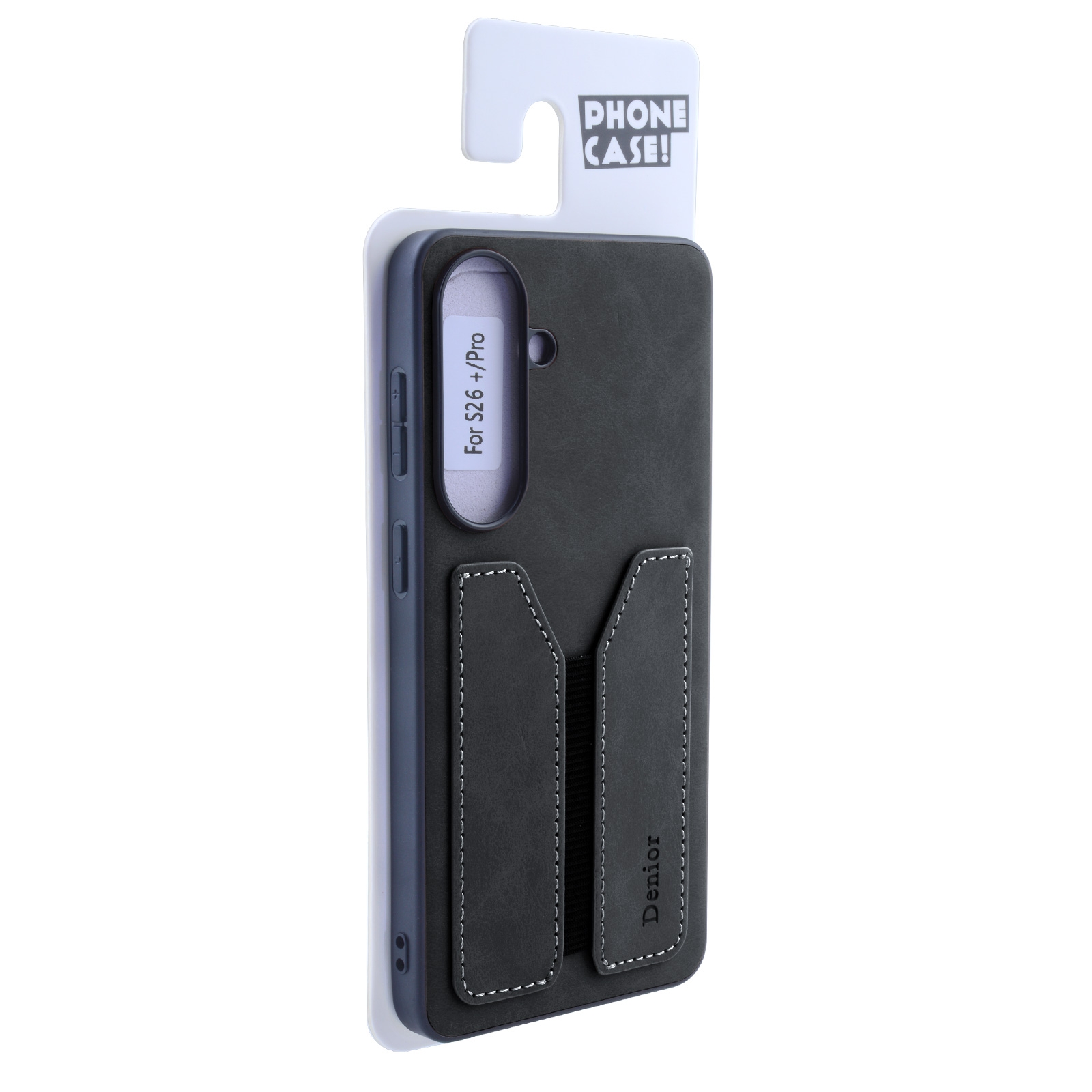 Retro Faux Leather Texture Case with Card Holder for S26, Black