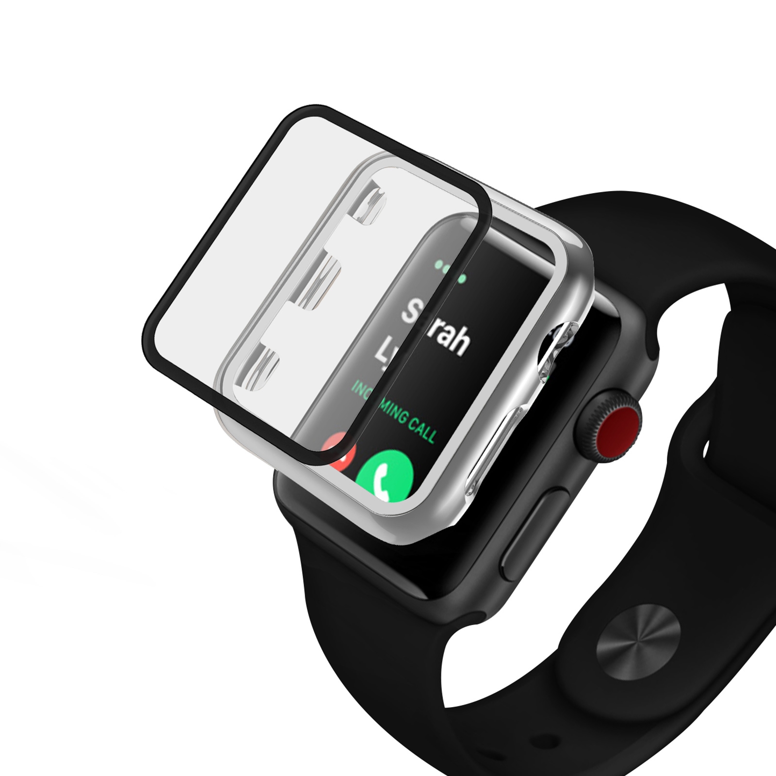 Scratch-Resistant Electroplated PC Case with Tempered Glass for iWatch Series 2/3 (42mm), Black