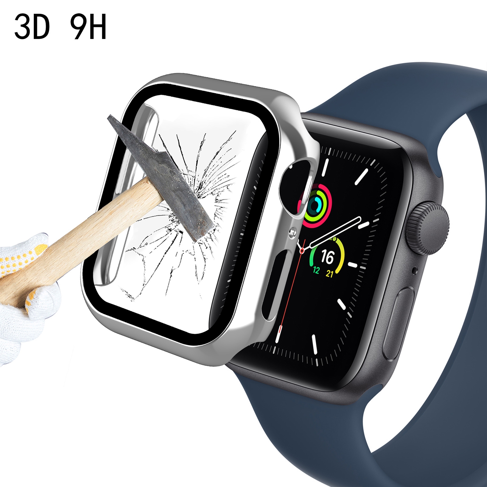 Scratch-Resistant Electroplated PC Case with Tempered Glass for iWatch Series 4/5/6/SE (40mm), Silver