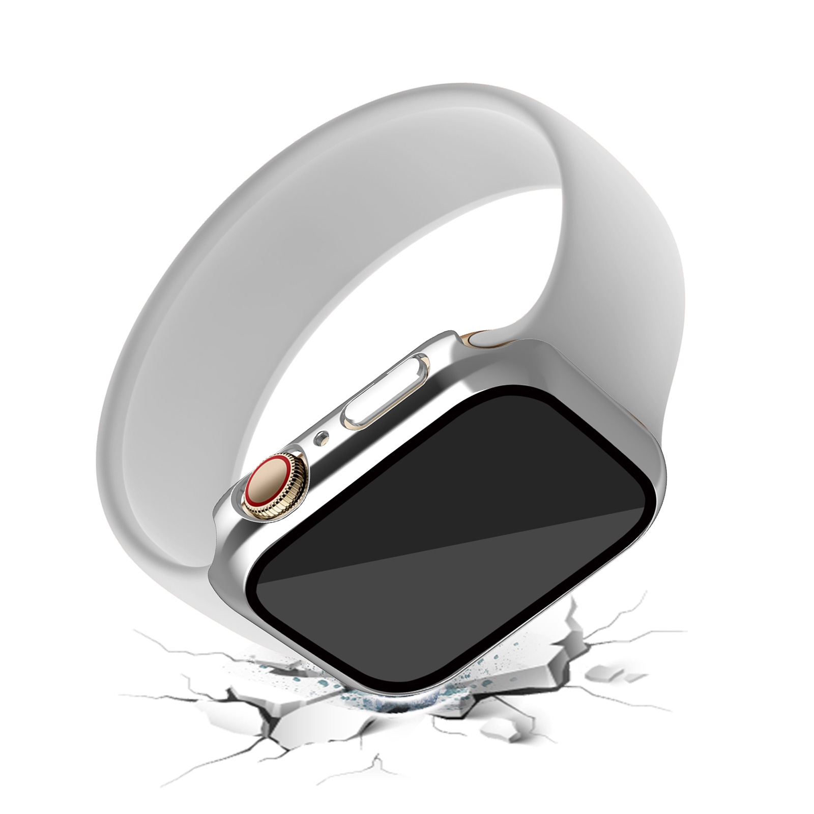 Scratch-Resistant Electroplated PC Case with Tempered Glass for iWatch Series 7/8/9 (41mm), Silver