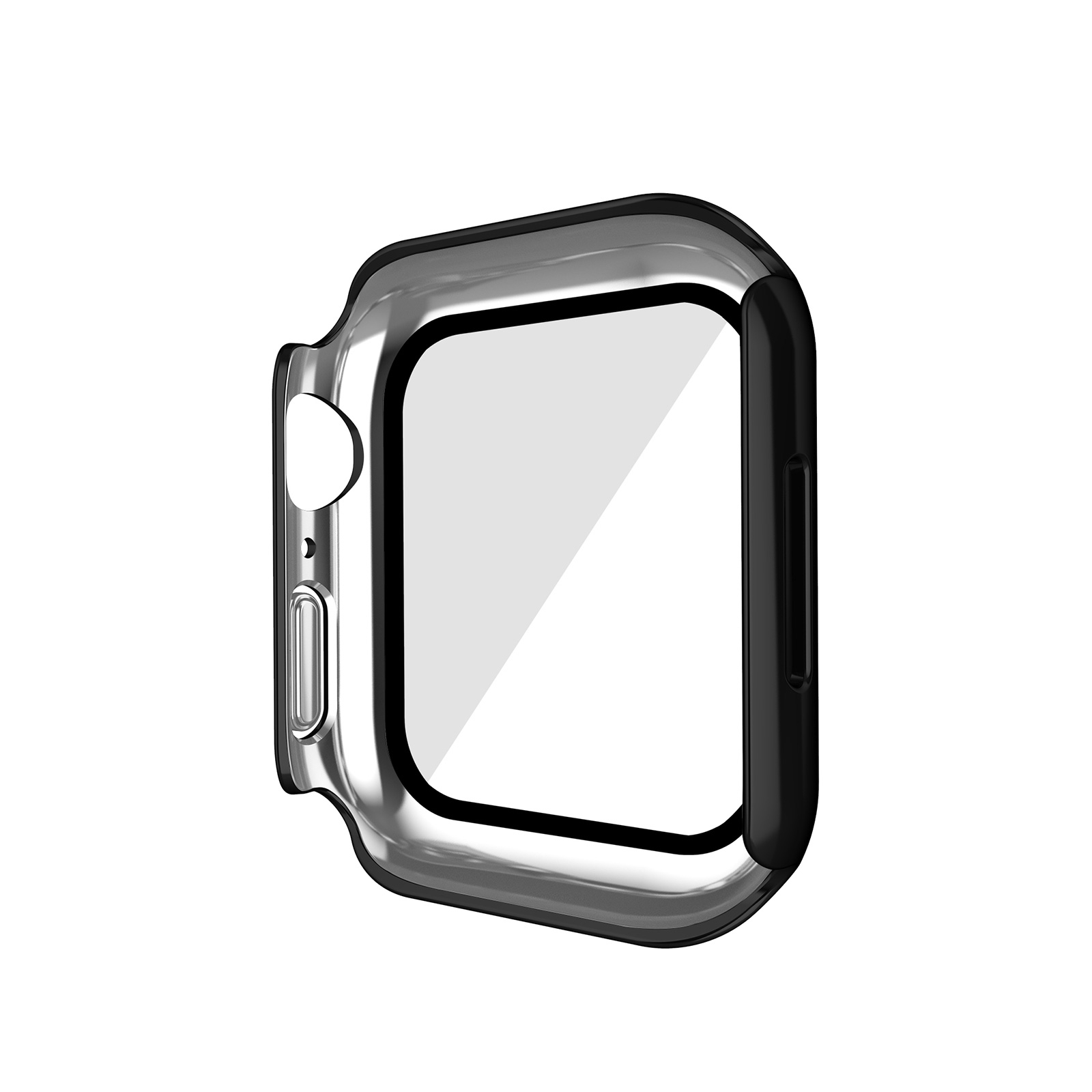 Scratch-Resistant Electroplated PC Case with Tempered Glass for iWatch Series 7/8/9 (45mm), Black