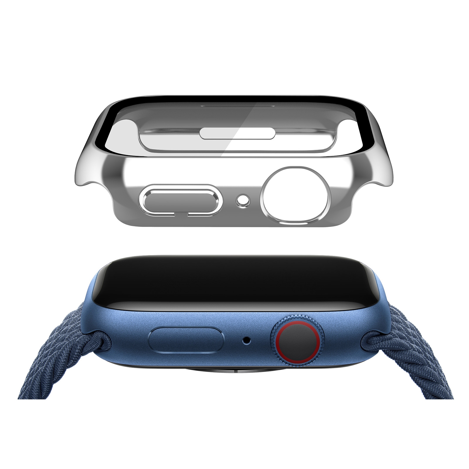 Scratch-Resistant Electroplated PC Case with Tempered Glass for iWatch Series 7/8/9 (45mm), Silver