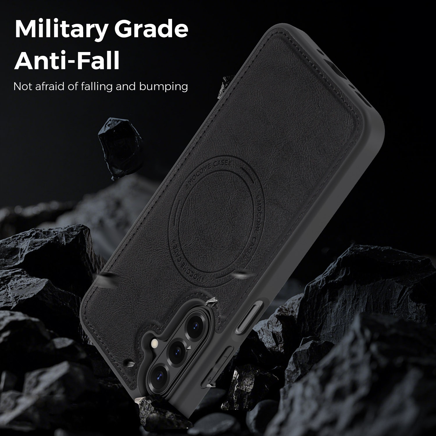 Shockproof PU Back Panel Magnetic Phone Case for S26 Plus, Black