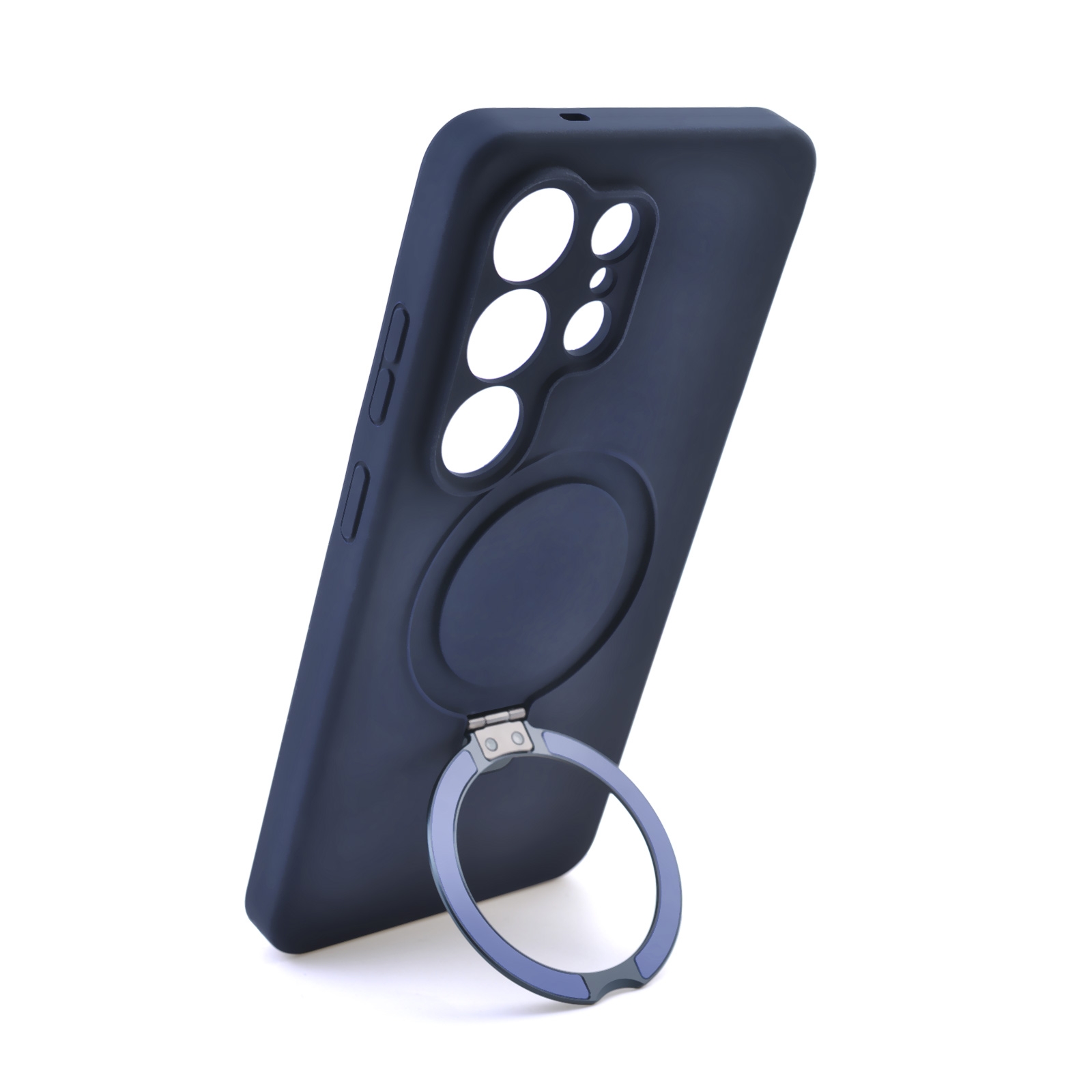 Silicone Magnetic Phone Case for S26 Ultra with Foldable Ring Stand, Dark Blue