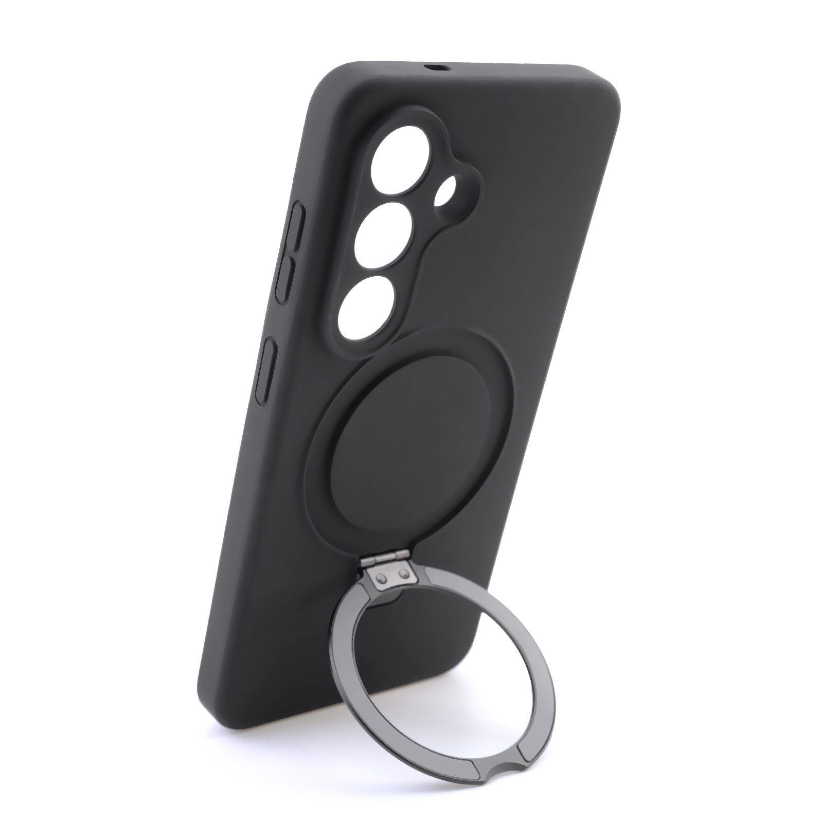 Silicone Magnetic Phone Case for S26 with Foldable Ring Stand, Black