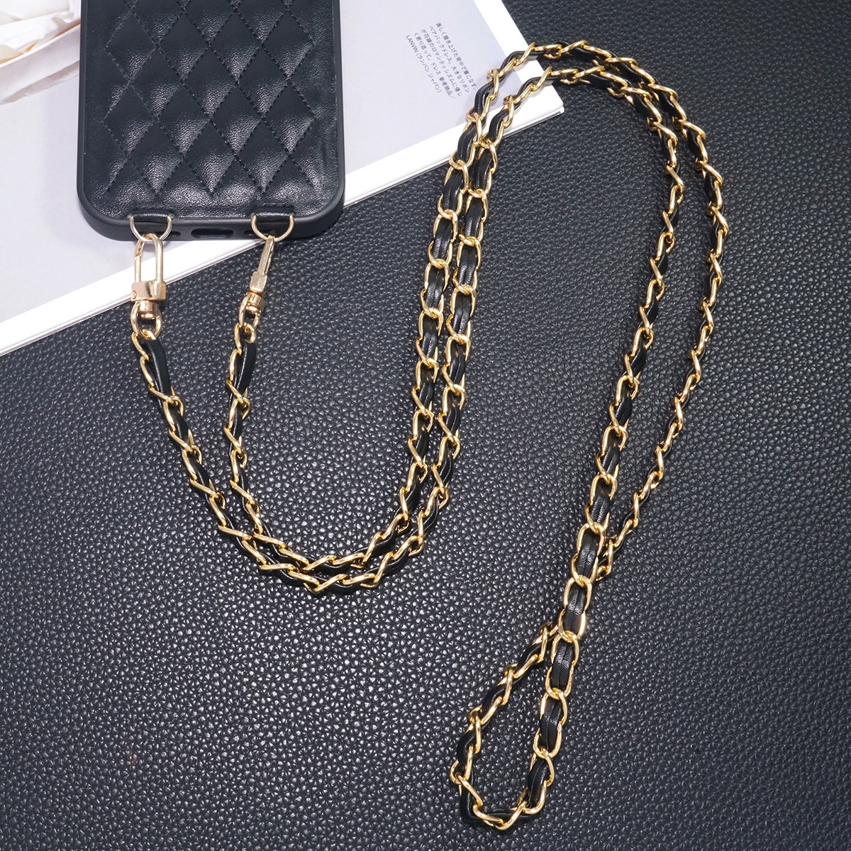 Vintage-Inspired PU Leather Woven Phone Chain, Black - Gold