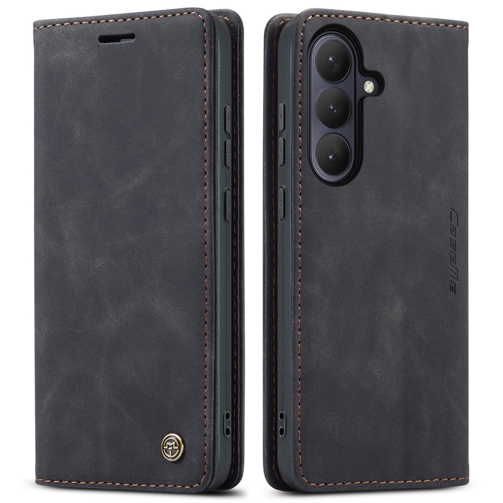 Vintage Matte PU Folio Case for S26 Plus, Black