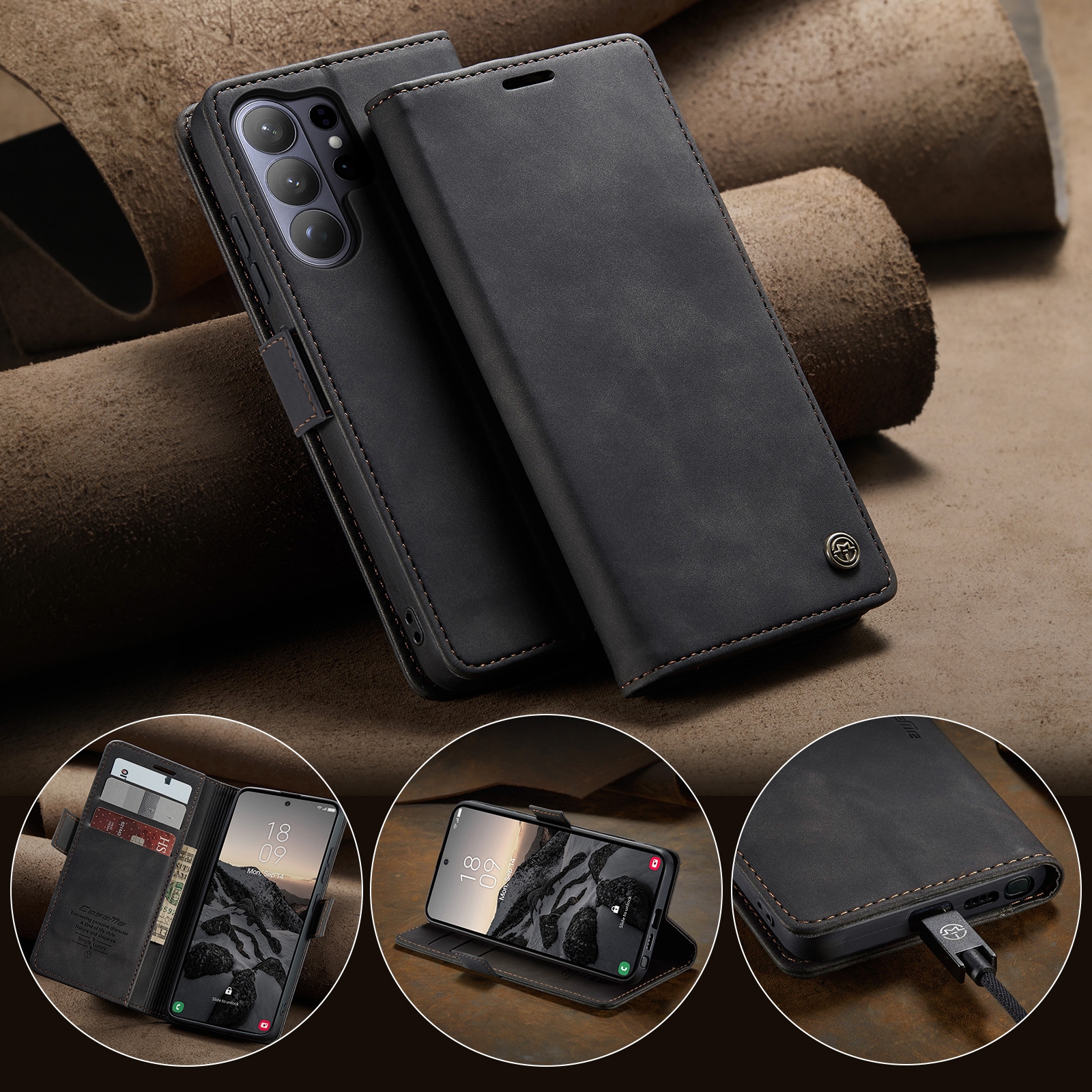 Vintage Matte PU Folio Case for S26 Plus, Black