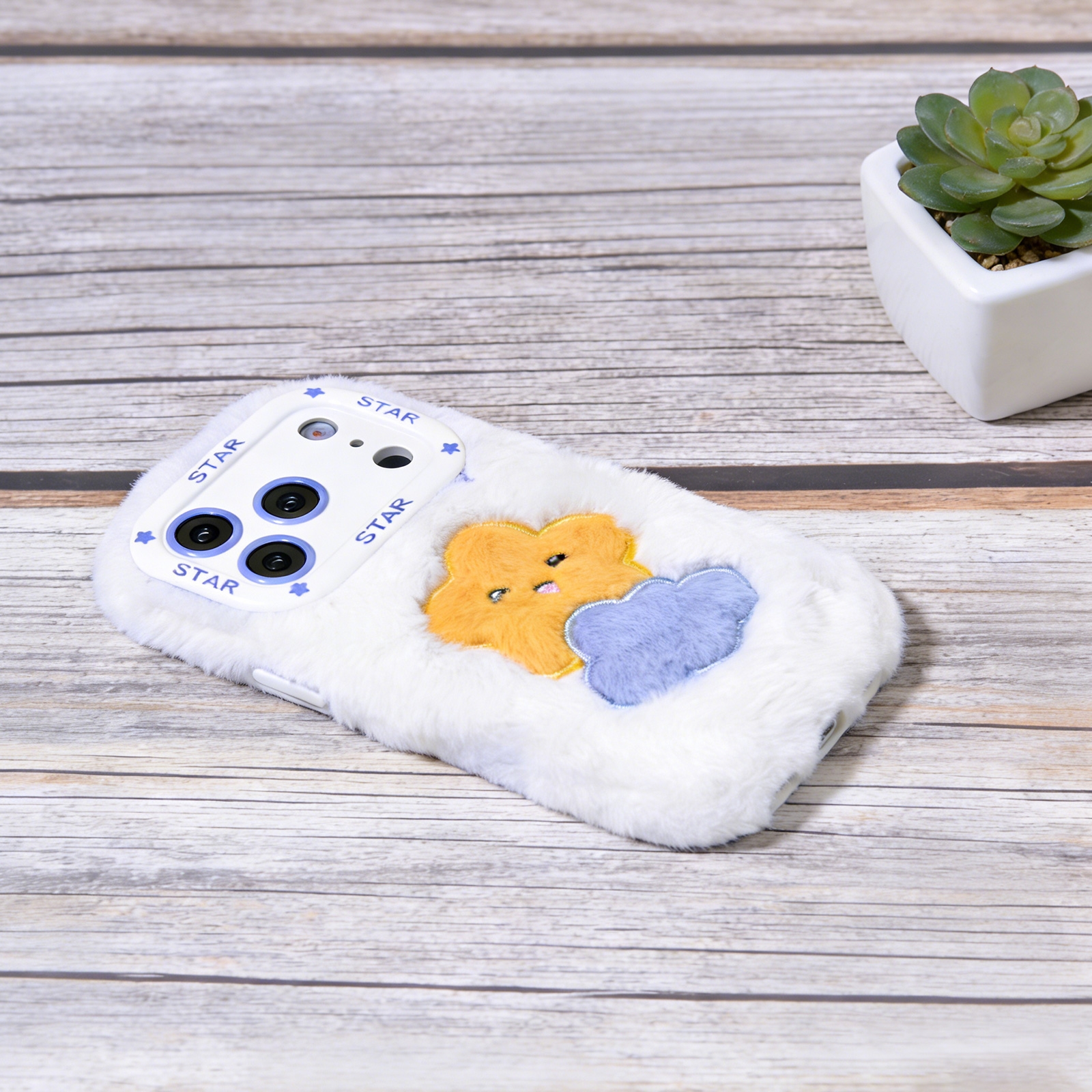 White Cloud Star Plush Silicone Phone Case for iPhone 17 Pro – Soft Cute Protective Cover