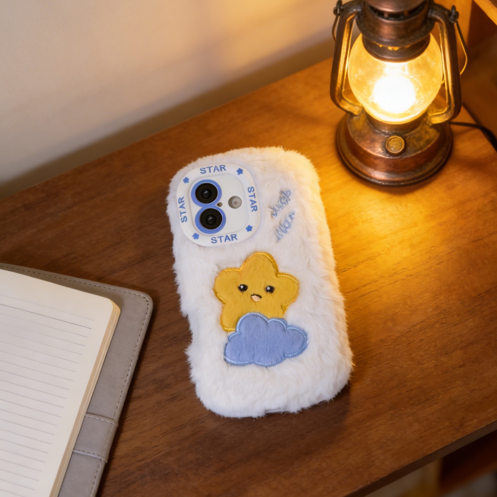 White Cloud Star Plush Silicone Phone Case for iPhone 17 – Soft Cute Protective Cover