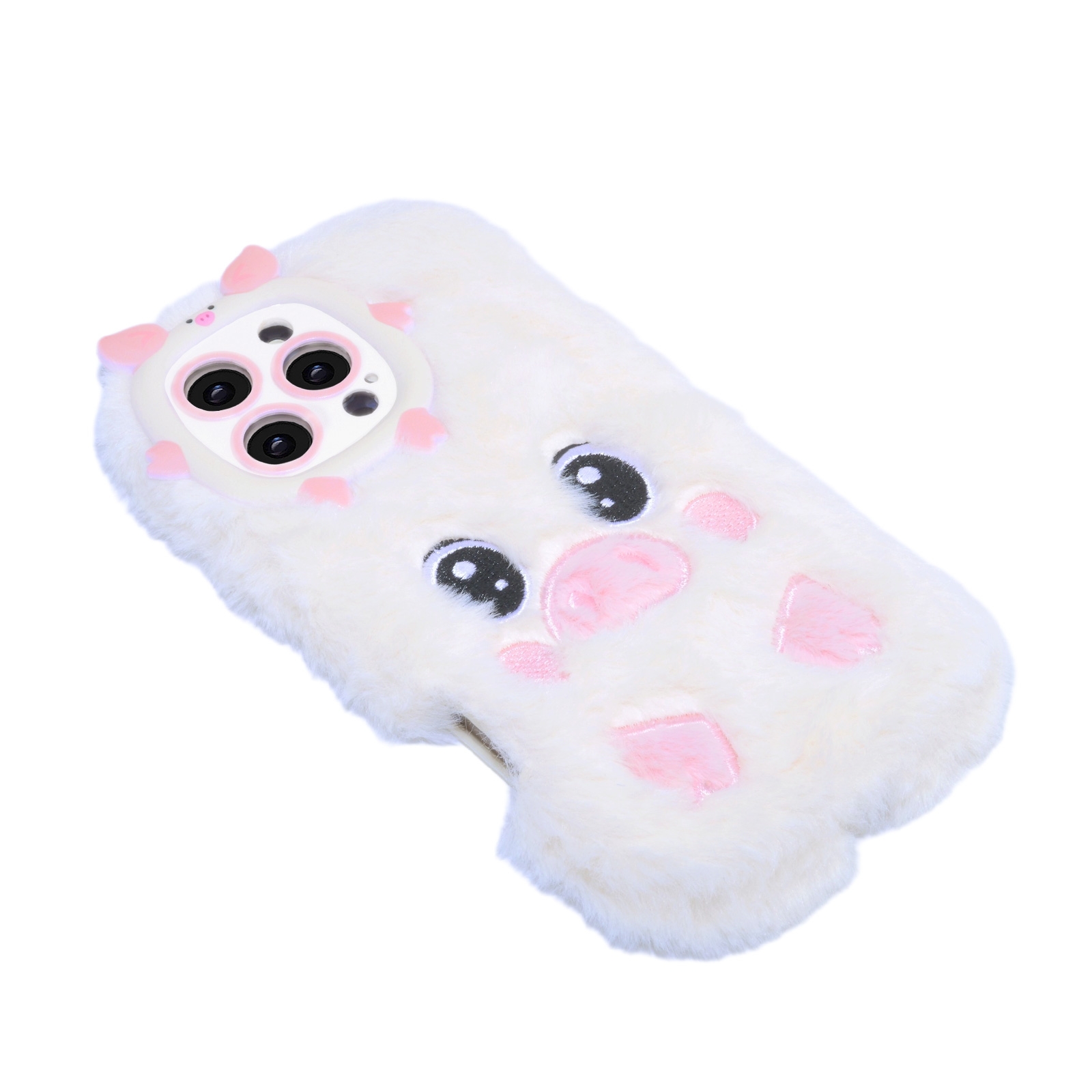 White Pig Plush Silicone Phone Case for iPhone 16 Pro – Soft Cute Protective Cover