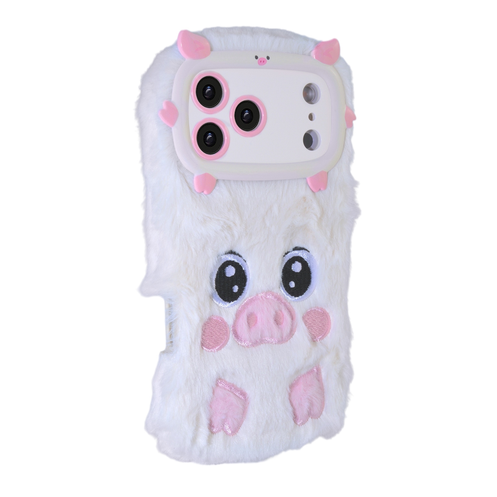 White Pig Plush Silicone Phone Case for iPhone 17 Pro Max – Soft Cute Protective Cover