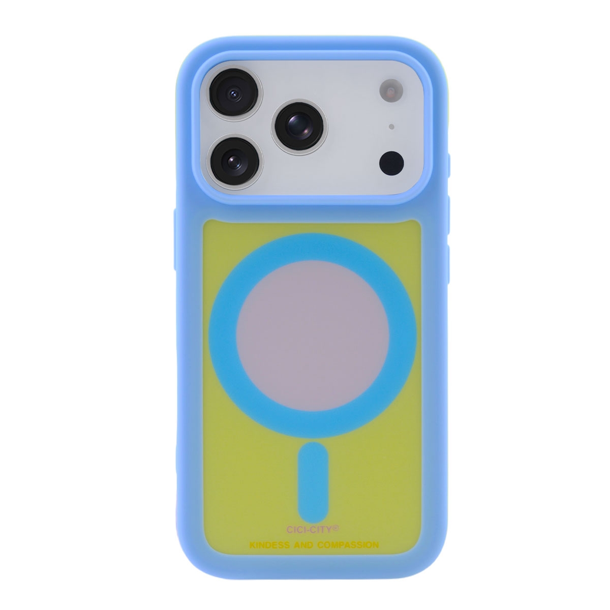 Y2K Dopamine Color Block Magnetic Case for iPhone 17 Pro Max, Light Blue and Yellow